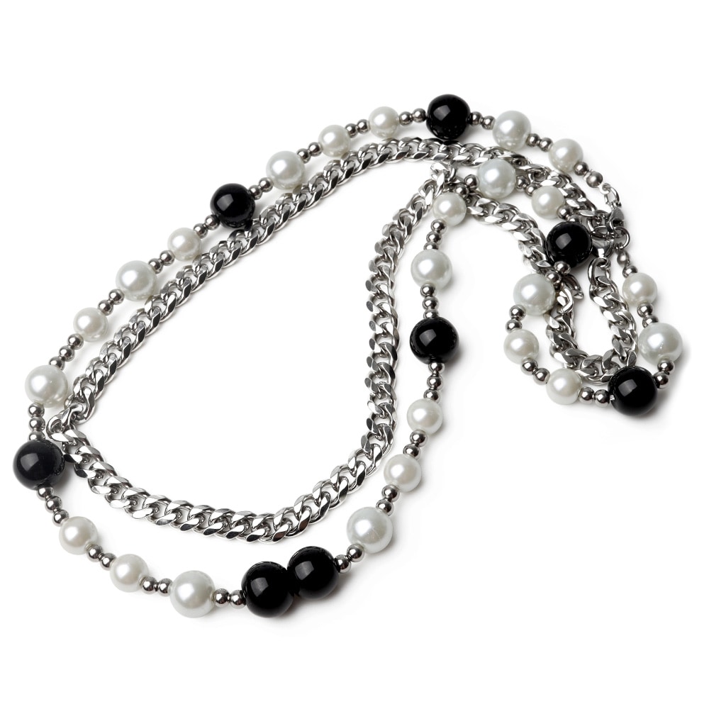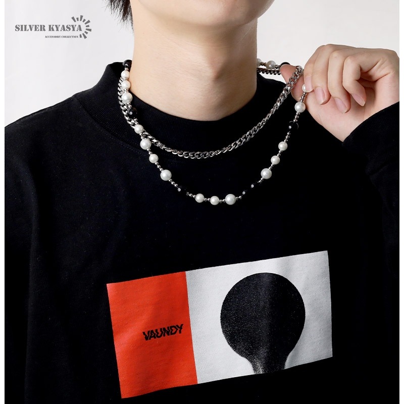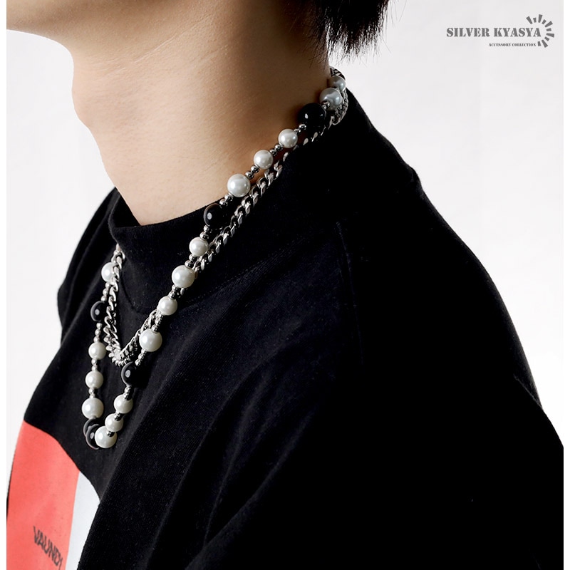 パールネックレス ビーズ・留め具:ステンレス パール:ガラスパール 喜平チェーン:ステンレス | |