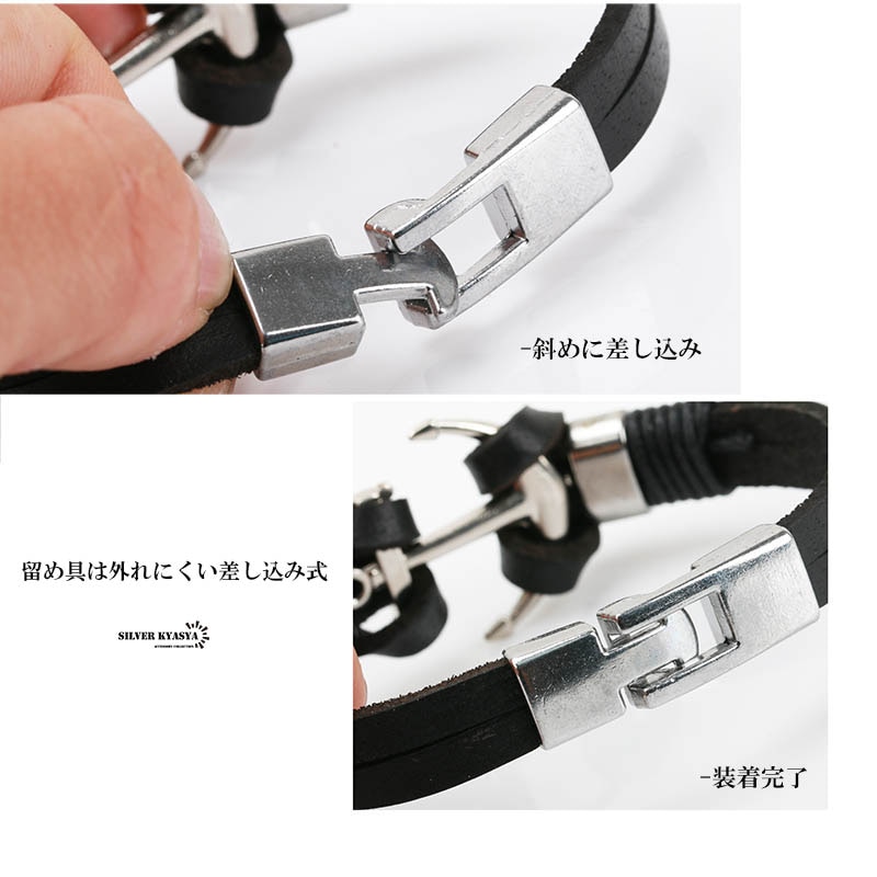 ■カジュアルやフォーマルなど、どんなスタイルにも馴染みやすいバンドタイプのブレスレットです。 ■アンカーデザインがさりげなく袖口からお洒落を演出できるブレスレットです。 ■男に似合うカッコいいデザインで男性へのプレゼント・ギフトにもおすすめ。 | |