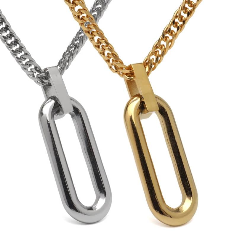 ステンレス オーバルリンクのーコマをペンダントにしたネックレス。2色 2サイズ [n1215]
