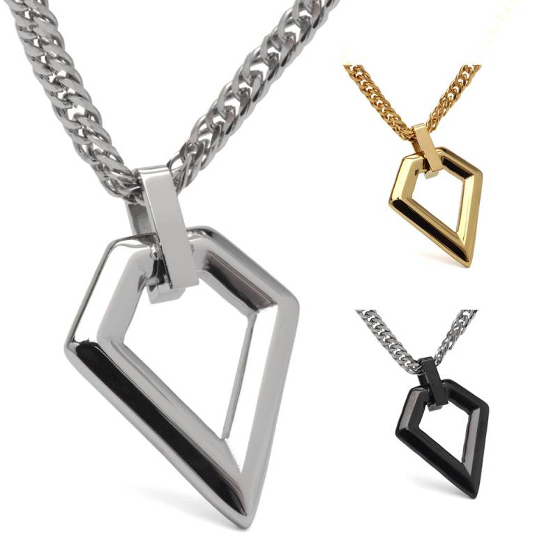 ステンレス スクエアなモチーフをペンダントにしたネックレス。3色 2サイズ [n1216]