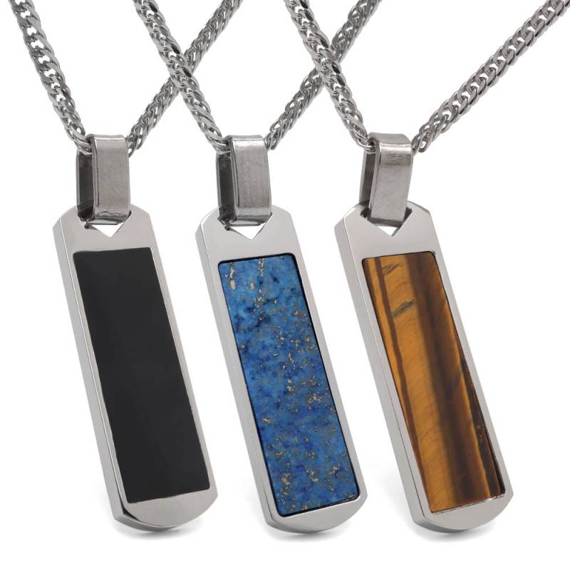 ステンレス 天然のタイガーアイを埋め込んだペンダントネックレス。3色 2サイズ [n1221]