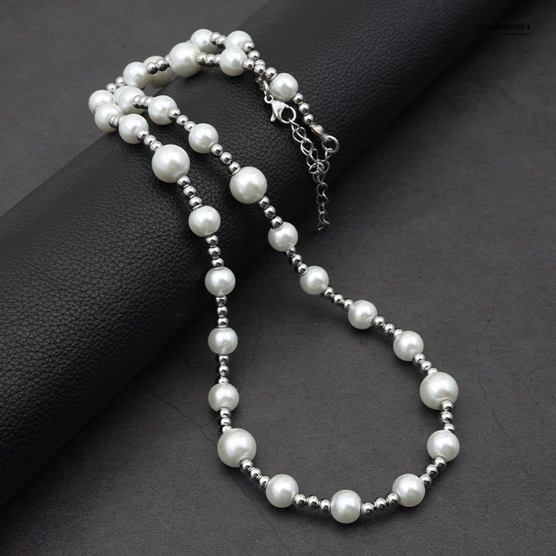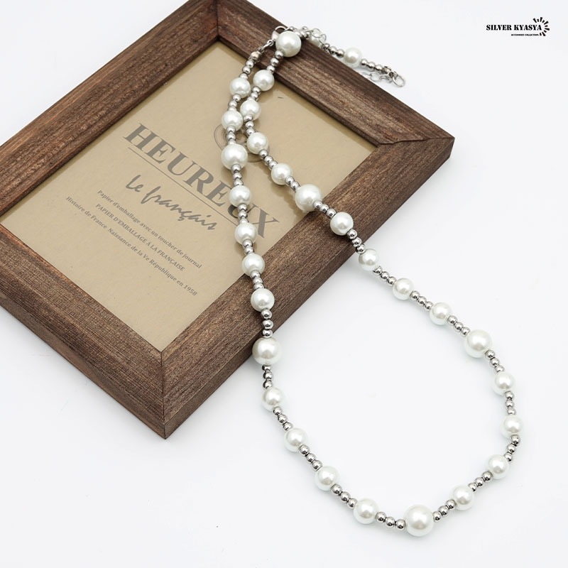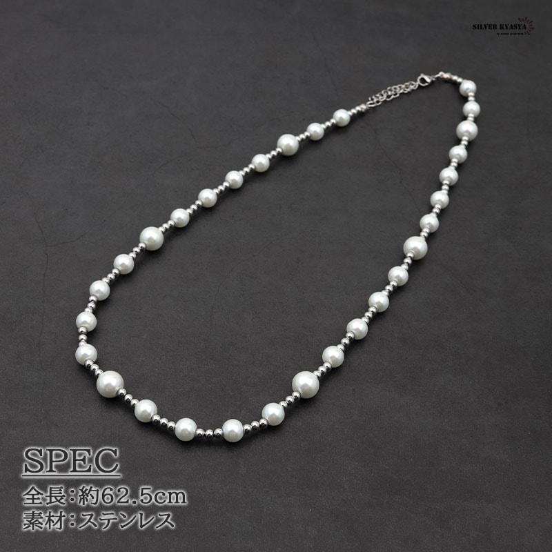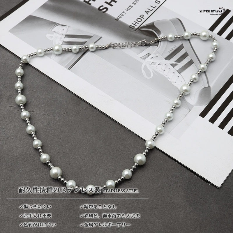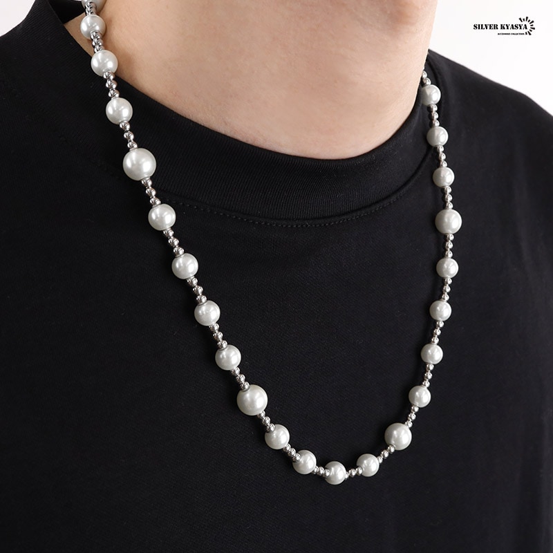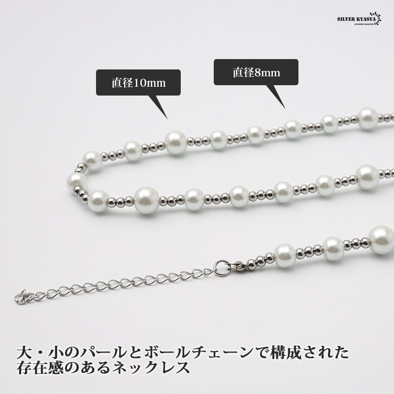 大・小のパールとボールチェーンで構成された存在感のあるネックレスです。 シンプルなデザインなので飽きることなし!メンズネックレス初心者にもオススメです! 本体に使用しているのは高品質ステンレス素材。金属アレルギーフリーアイテムです。 耐久性に優れており、水や汗などで錆びることはありません。 | |