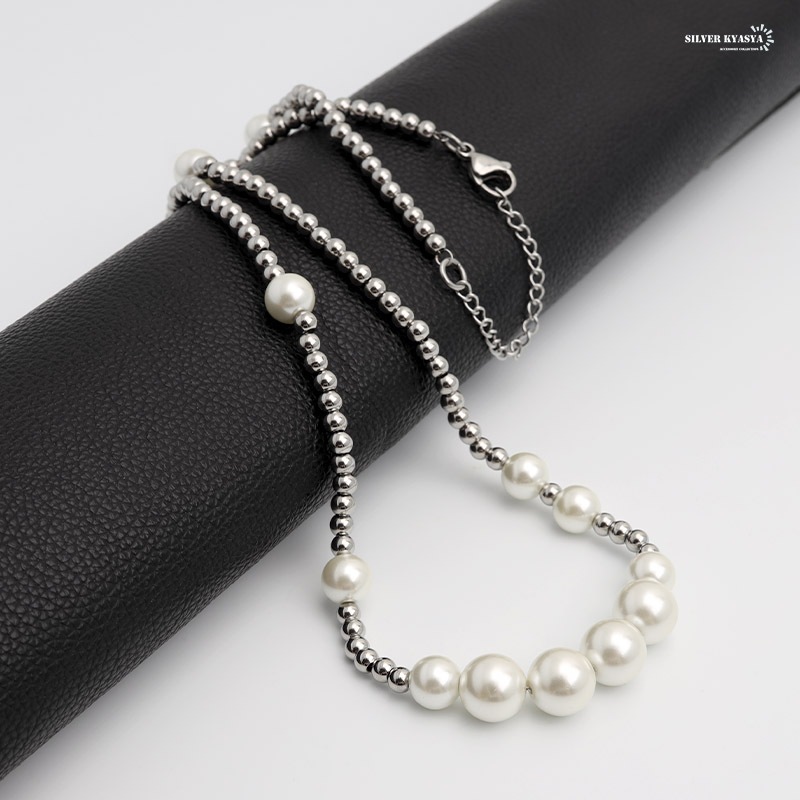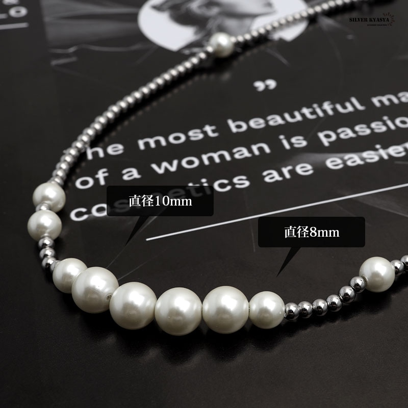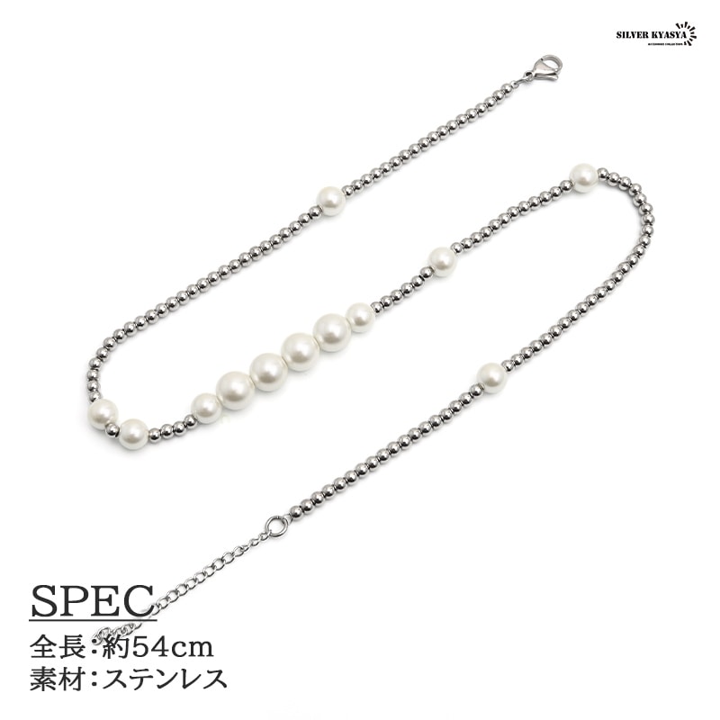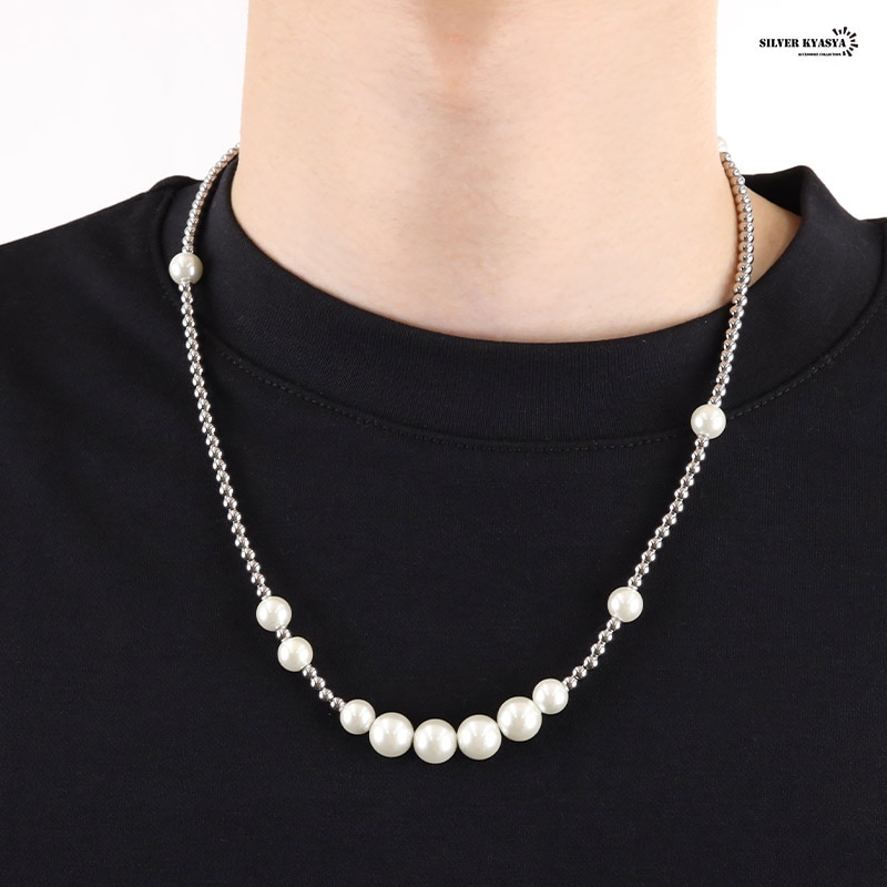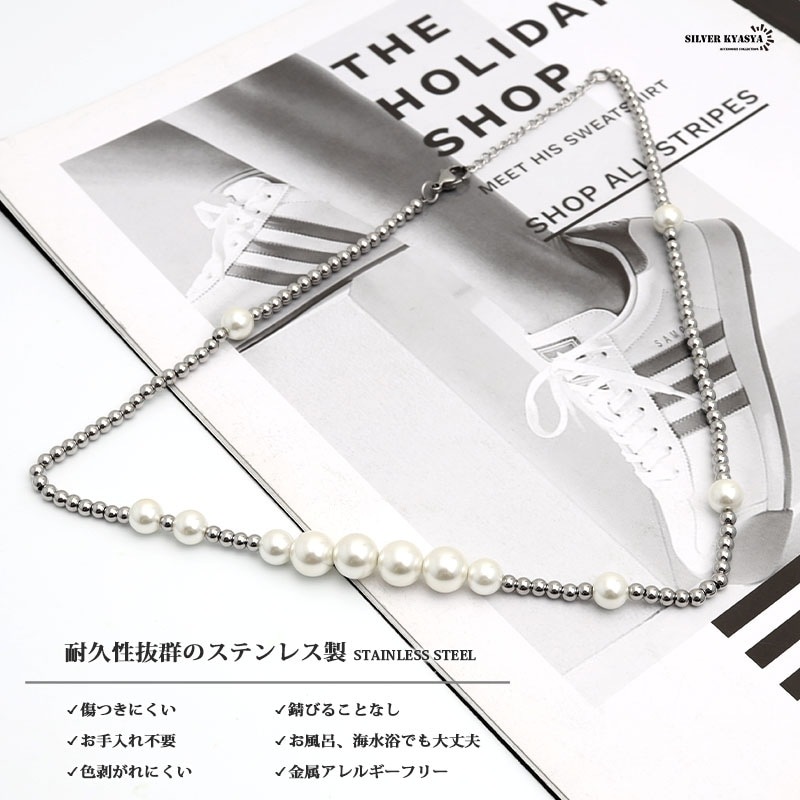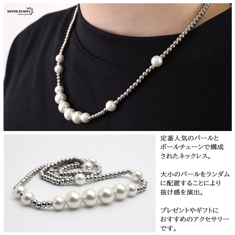定番人気のパールとボールチェーンで構成されたネックレスです。大小のパールをランダムに配置することにより抜け感を演出します。 本体に使用しているのは高品質ステンレス素材。金属アレルギーフリーアイテムです。耐久性に優れており、水や汗などで錆びることはありません。 | |