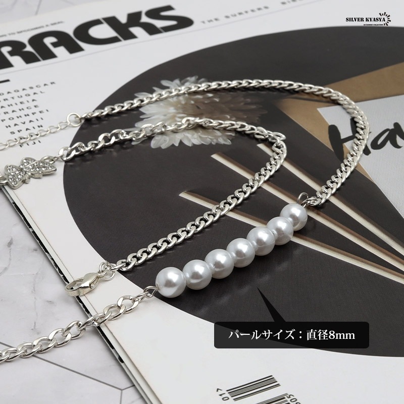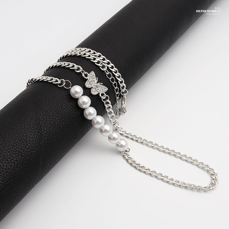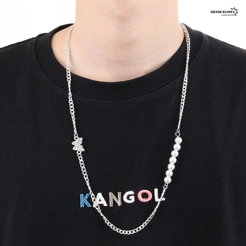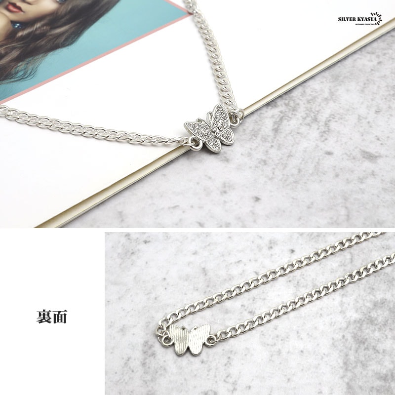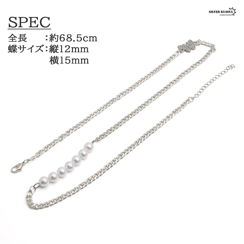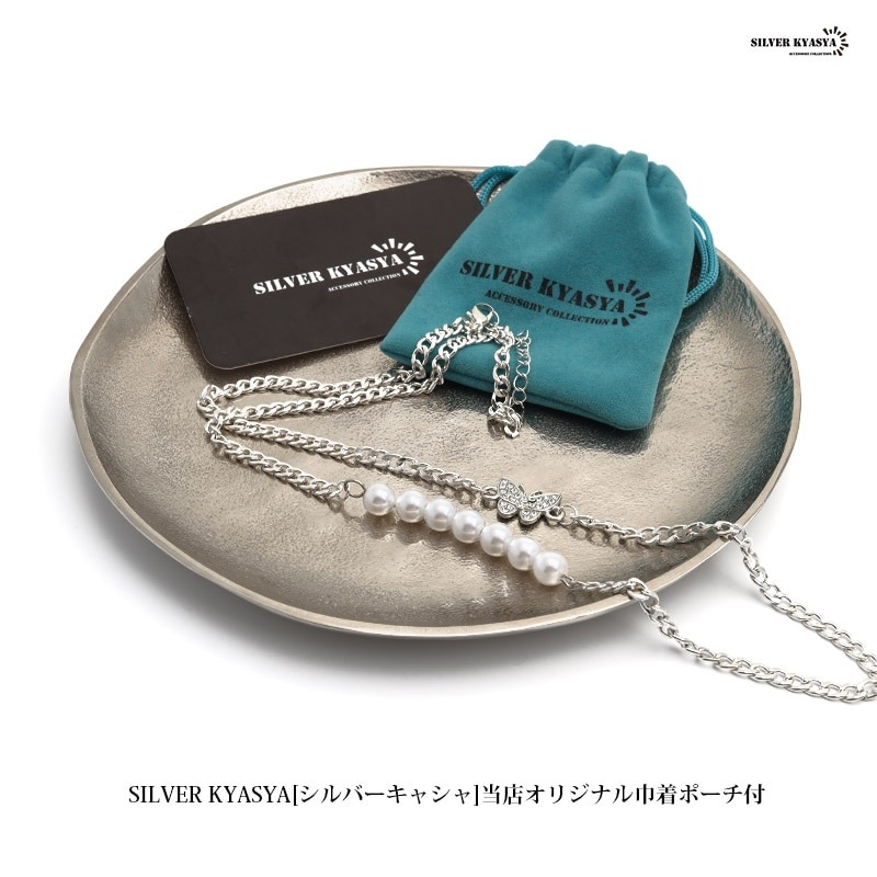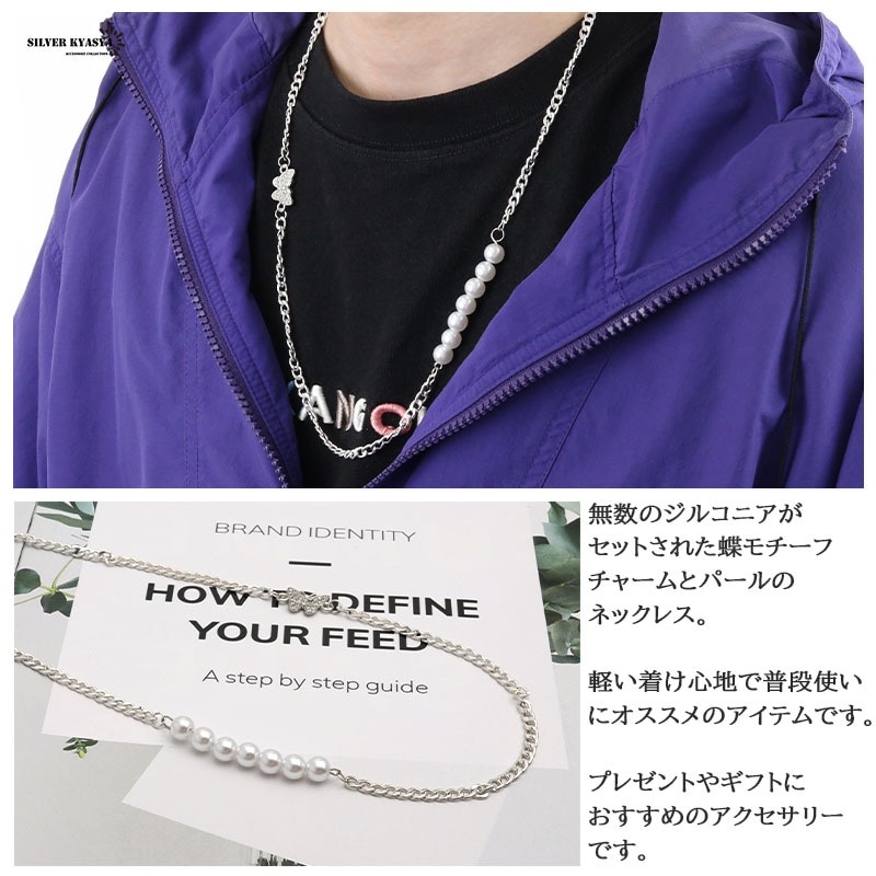 無数のジルコニアがセットされた蝶モチーフチャームとパールのネックレスです。 軽い着け心地で普段使いにオススメのアイテムです。 | |