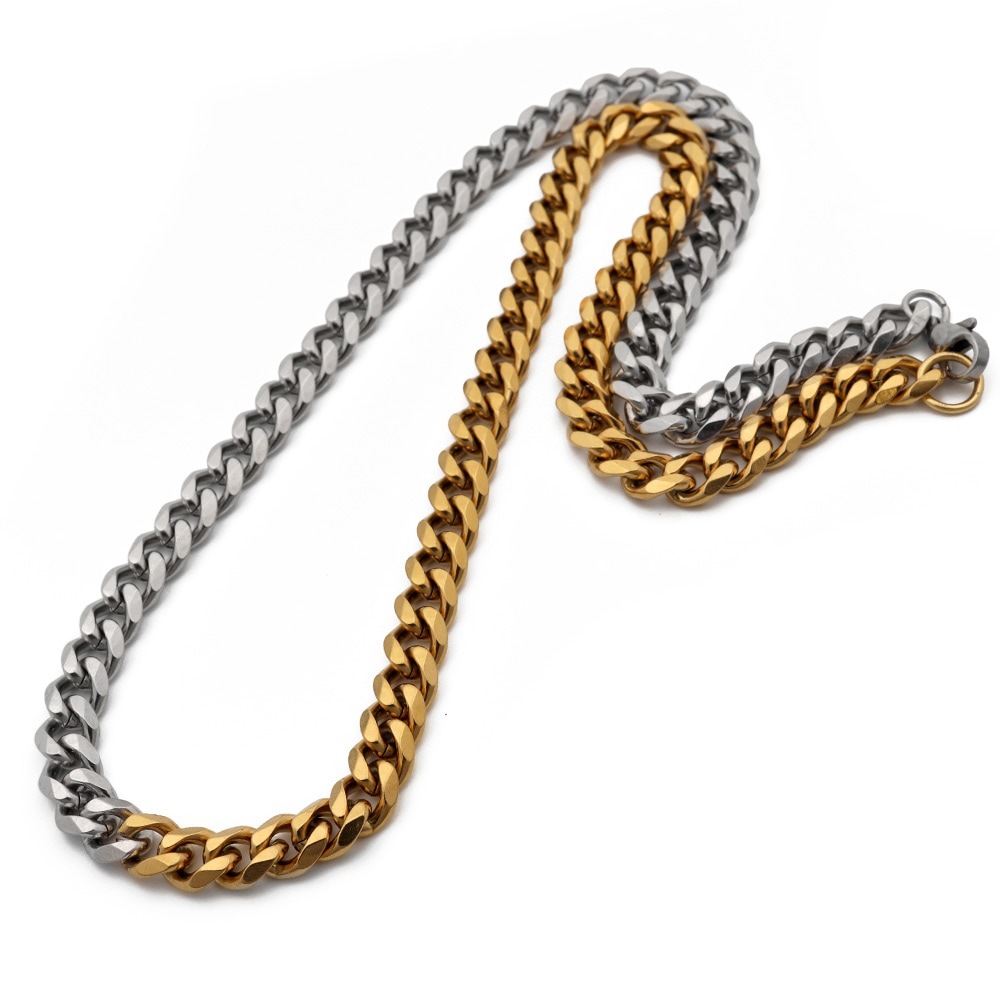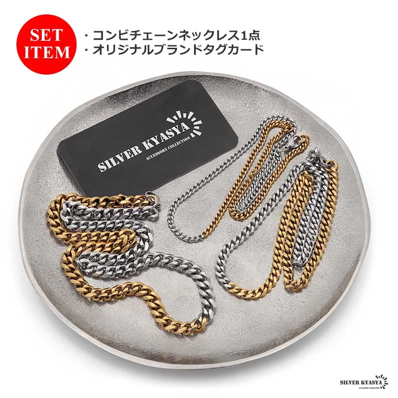 【SILVER KYASYAオリジナル!大注目のコンビチェーン】 ゴールドとシルバーのコンビチェーンは、他ではなかなか手に入らない 当店オリジナルアイテム!こだわりのチェーンネックレスです。 シンプルなのに個性をしっかり演出してくれて、使い勝手抜群。 普段のファッションをスパイスアップしてくれる、太めの幅7mmタイプ。 丈夫で、お手入れ不要な人気のステンレス製。長く愛用していただけるアイテムです。 | |