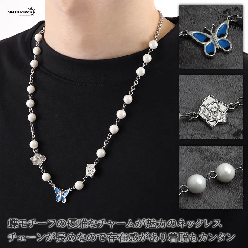 蝶モチーフの優雅なチャームが魅力のネックレスです。チェーンが長めなので存在感があり、着脱もカンタン! シンプルなデザインなので飽きることなし!メンズネックレス初心者にもオススメです! | |