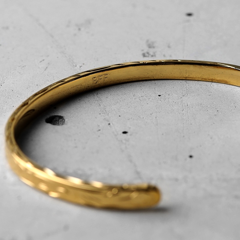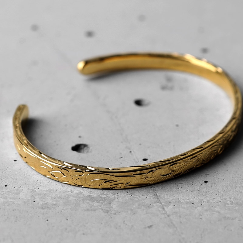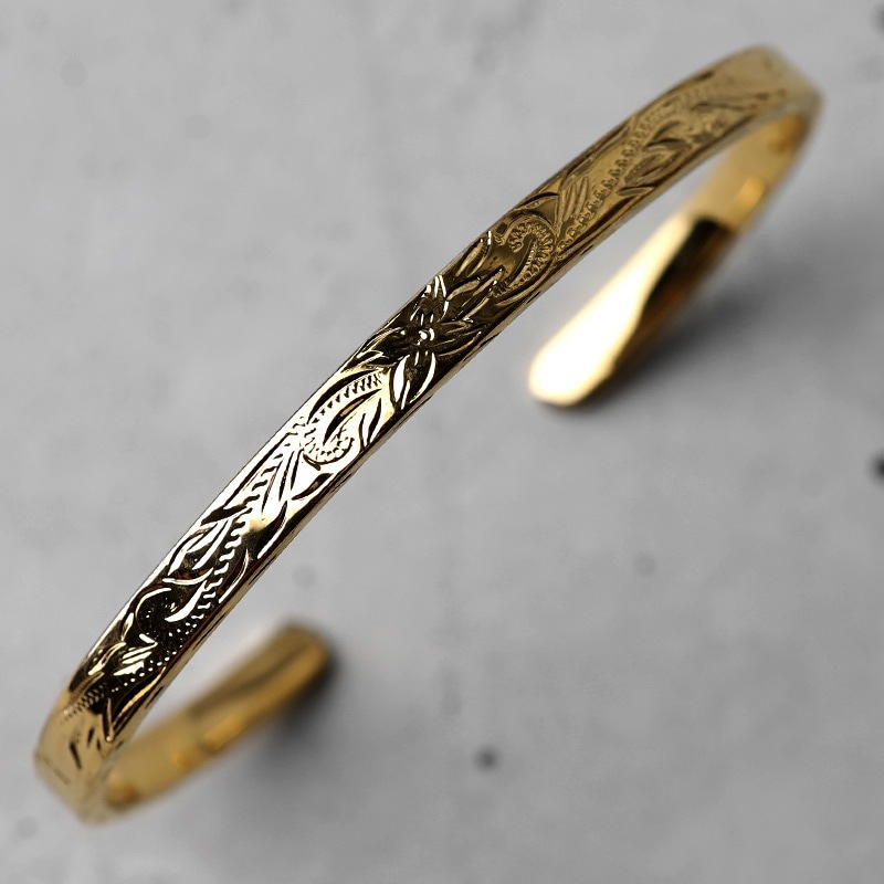■ハワイアン×平打バングル 幅4mmタイプ ハワイの身近な花プルメリアを中心に波模様とハワイでは神聖な葉とされているマイレをレリーフしたバングル。レリーフは職人による手掘りで施した。 ■華やかに輝くゴールドカラータイプ 豪華で華やかに輝く18Kゴールドカラータイプ。シルバーカラーは別ページよりお買い求めください。 ■BFF -Ocean- コレクションアイテム | |
