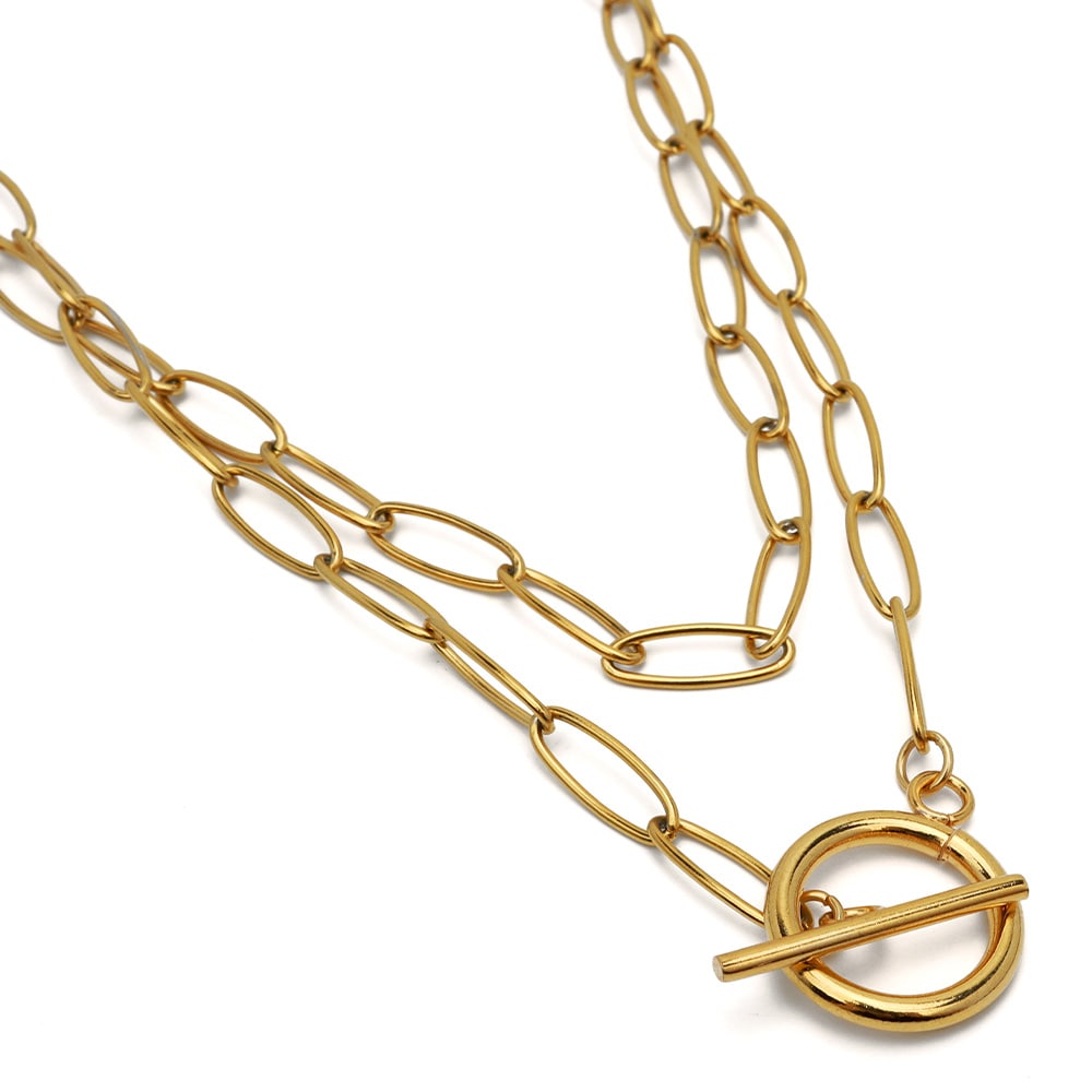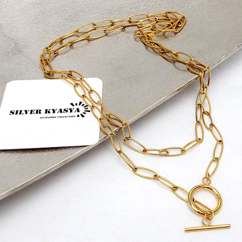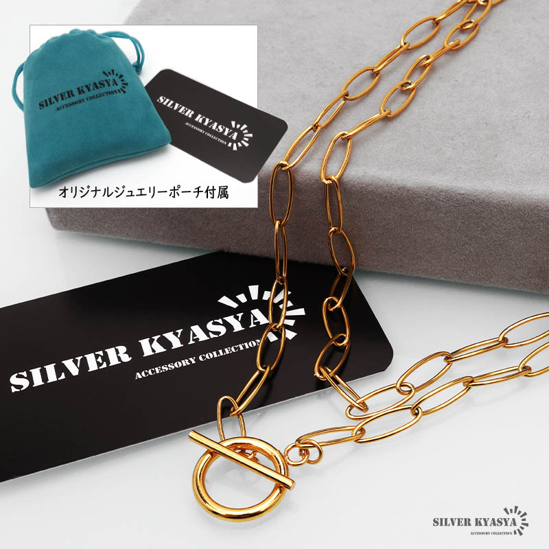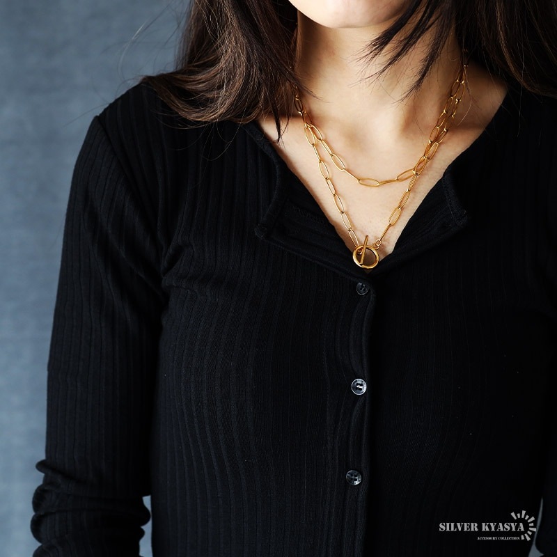 ステンレス オーバルリンクのーコマをペンダントにしたネックレス。2色 2サイズ [n1215]