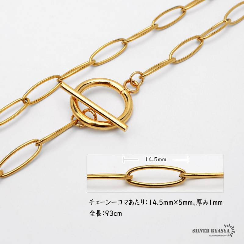 | | チェーン一コマあたり:14.5mm×5mm、厚み1mm 全長:約93cm |