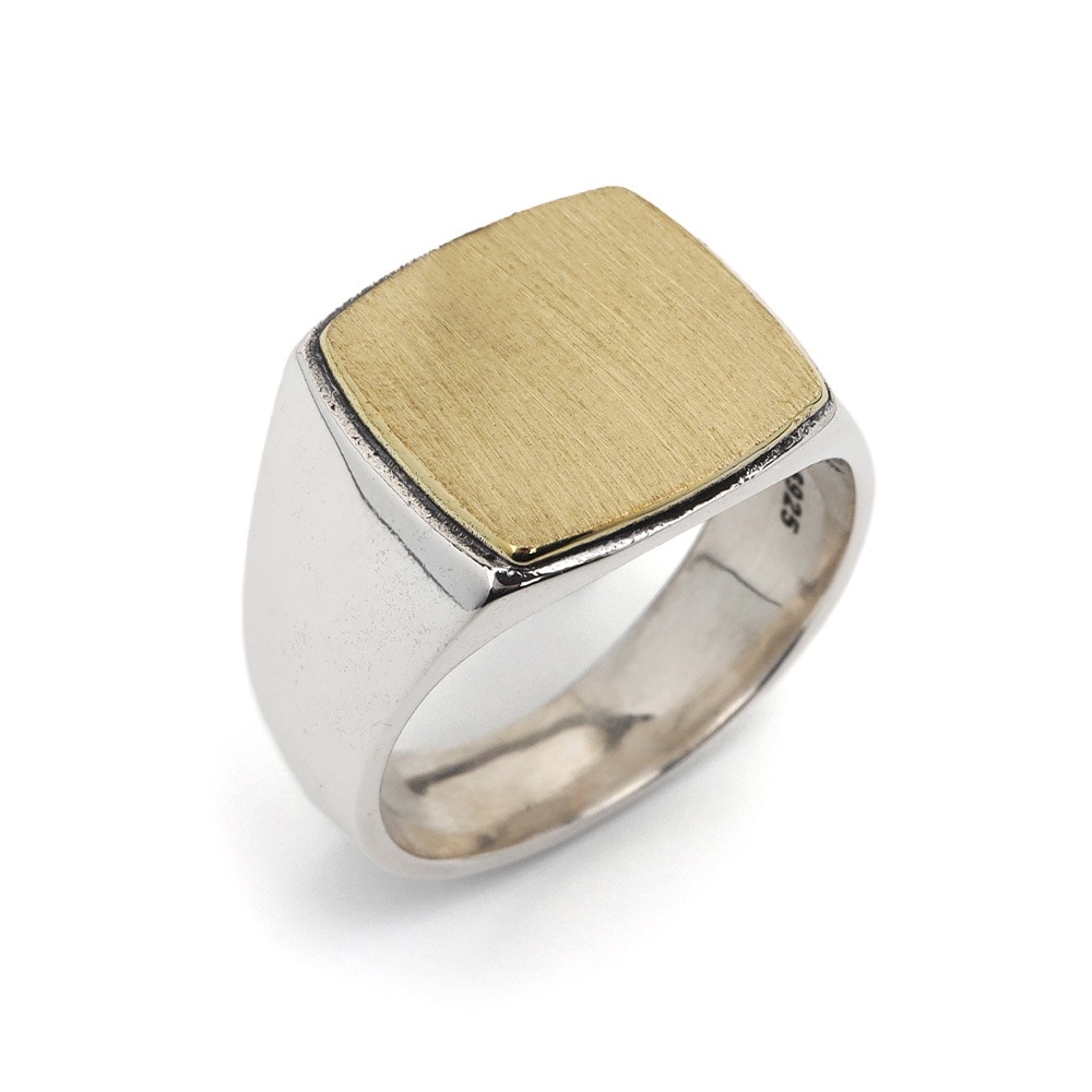 ■ITEM DETAIL ゴールド×シルバーのコンビカラーが効果的な印台リング。シンプルながらもたっぷりとした幅感が指元のお洒落にぴったりなアイテムです。 ■SILVER925素材 シルバー925は、銀含有率(純度)92.5%を示し、一般的に純銀として扱われています。サビや劣化等がほとんどなく金属アレルギーも出にくいとされており、アクセサリーとして重宝される金属です。 | |