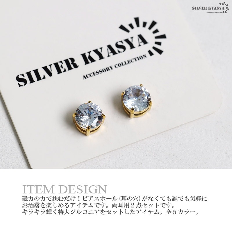 ■ITEM DETAIL ピアスホールが無くても使えるマグネットピアス。本体と付属のマグネットで耳に挟むだけで装着できます。ジルコニアが光を反射させキラキラと輝くデザイン。 ■ステンレス製 金属部分はステンレス製を採用。耐久性に優れ、水場での使用やつけっぱなしも問題ありません。金属アレルギーも出にくく安心して使用できます。 | |