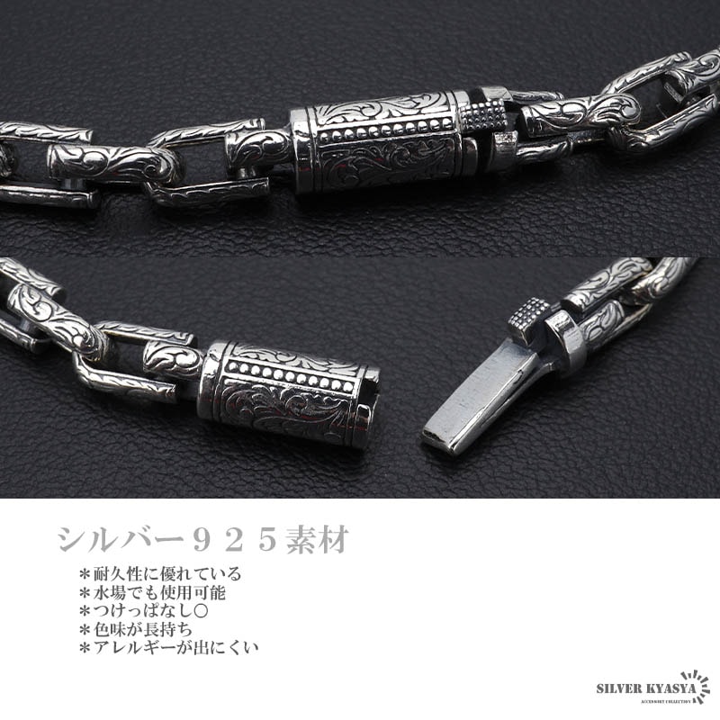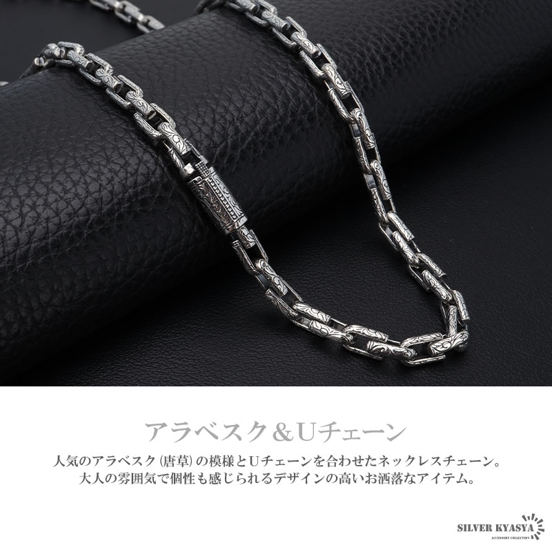 ■アラベスク&Uチェーン 人気のアラベスク(唐草)の模様とUチェーンを合わせたネックレスチェーン。大人の雰囲気で個性も感じられるデザインの高いお洒落なアイテム。 ■SILVER925素材 シルバー925は、銀含有率(純度)92.5%を示し、一般的に純銀として扱われています。サビや劣化等がほとんどなく金属アレルギーも出にくいとされており、アクセサリーとして重宝される金属です。 | |