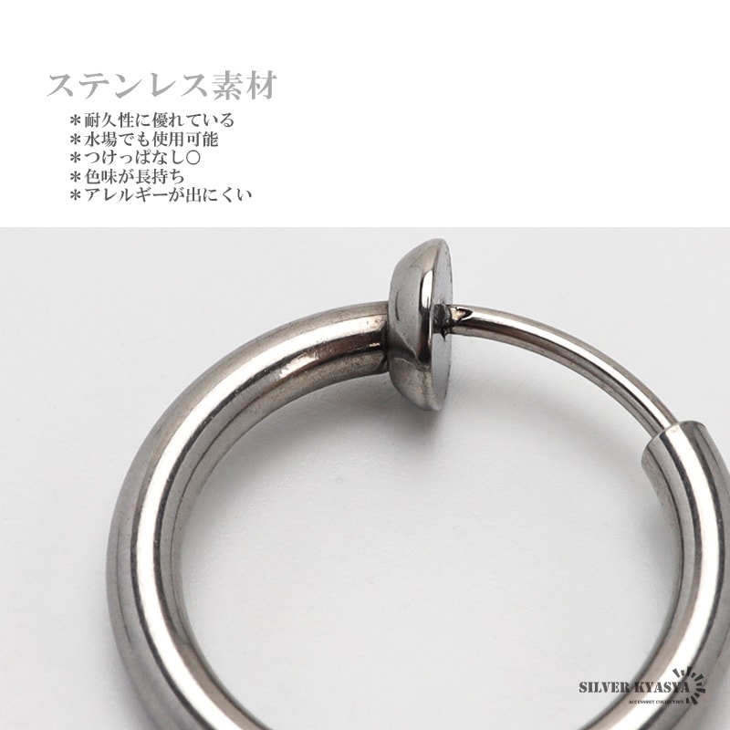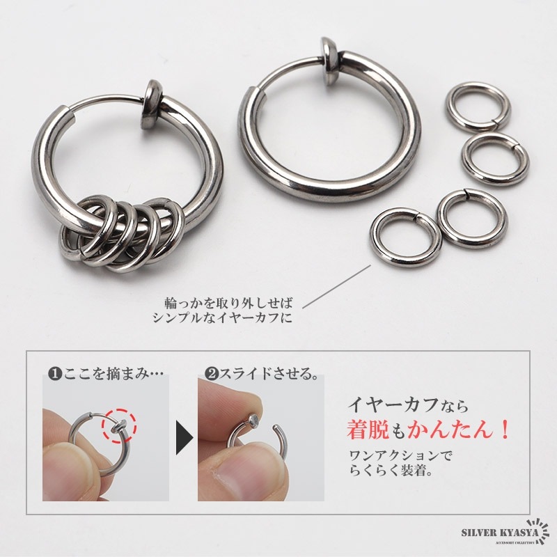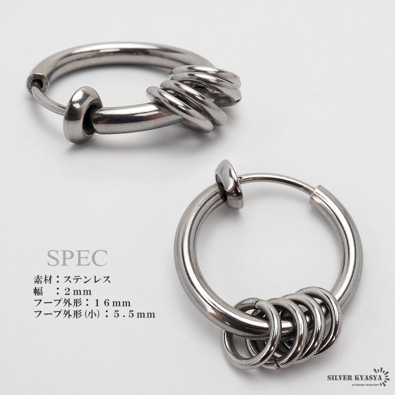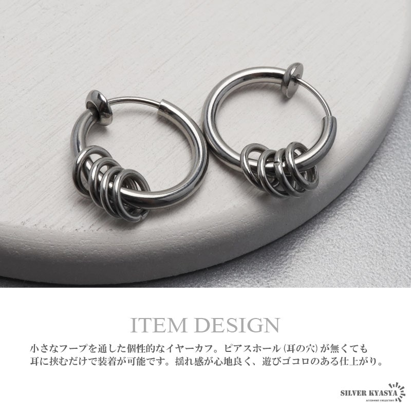 ■ITEM DETAIL 小さなフープを通した個性的なイヤーカフ。ピアスホール(耳の穴)が無くても耳に挟むだけで装着が可能です。揺れ感が心地良く、遊びゴコロのある仕上がり。 ■ステンレス素材を使用 金属部分は頑丈なことで知られるステンレス素材を採用。耐久性はもちろん耐水性も高く水場での着用も可能。金属アレルギーも出にくいとされている金属です。 | |