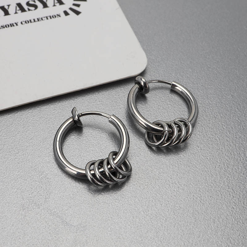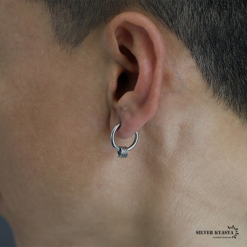 ステンレス メタリックな3連ラインにひねりを加えたフープピアス。2色 [e494]