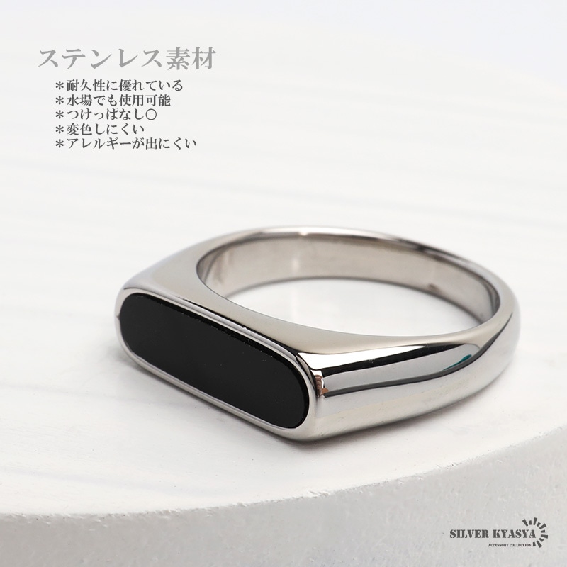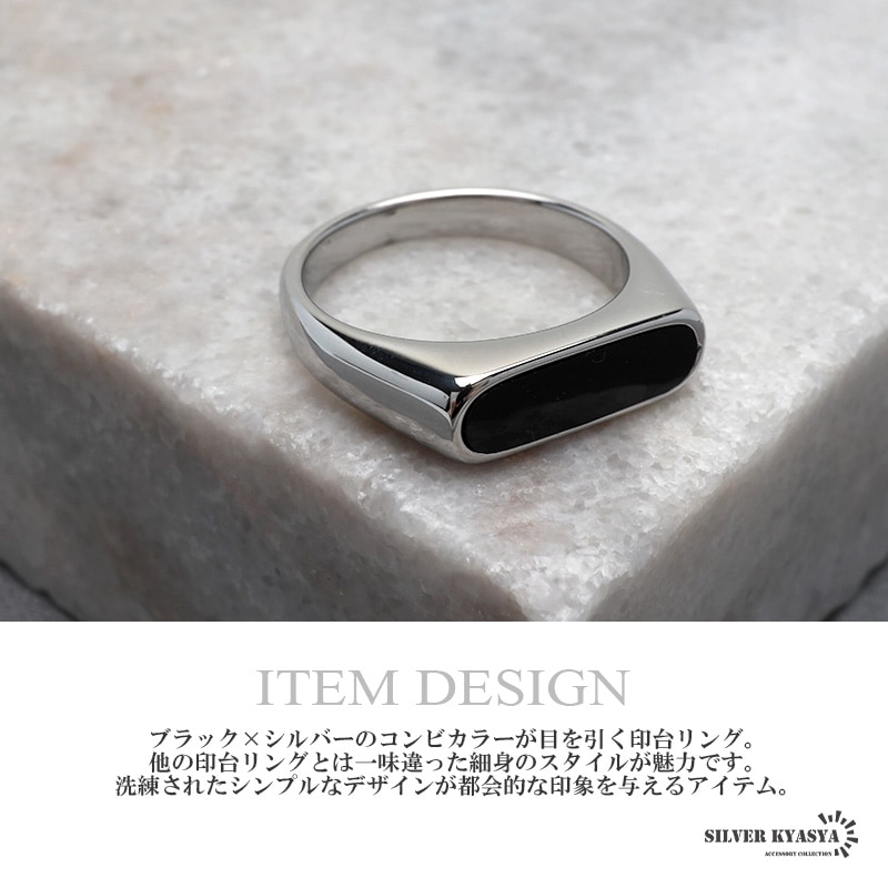 ■ITEM DETAIL ブラック×シルバーのコンビカラーが目を引く印台リング。他の印台リングとは一味違った細身のスタイルが魅力です。洗練されたシンプルなデザインが都会的な印象を与えるアイテム。 ■ステンレス素材を使用 金属部分は頑丈なことで知られるステンレス素材を採用。耐久性はもちろん耐水性も高く水場での着用も可能。金属アレルギーも出にくいとされている金属です。 | |