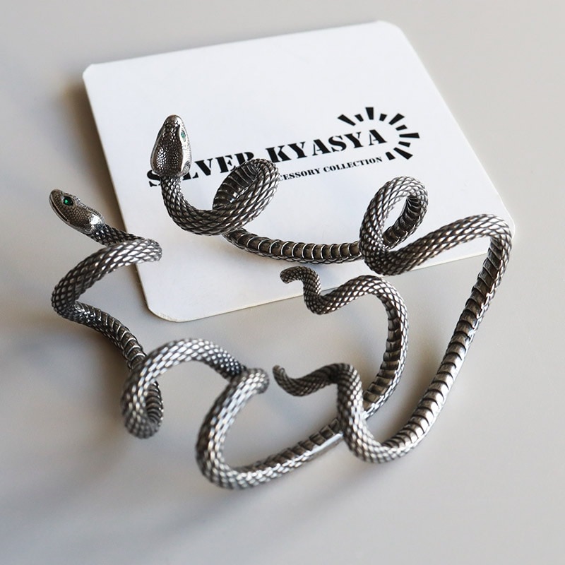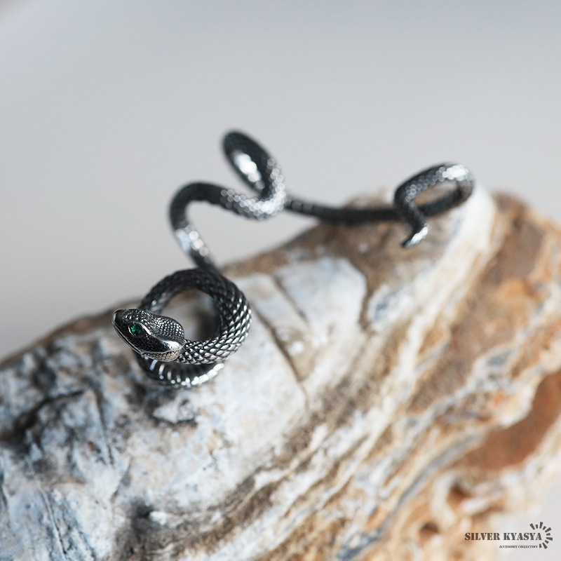 ■ITEM DETAIL とぐろを巻く蛇を模した大胆なデザインのイヤーカフ。燻し風のブラック加工が映えるアイテム。耳に引っ掛けるだけで装着が可能です。右耳用と左耳用の2タイプ展開。 ■316Lサージカルステンレス素材を使用 金属部分は医療用としても知られる316Lサージカルステンレスを採用。耐久性はもちろん耐水性も高く水場での着用も可能。ステンレスの中でも極めてアレルギーを引き起こしにくく、安心して使用できます。 | |