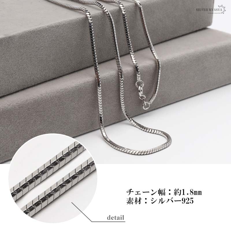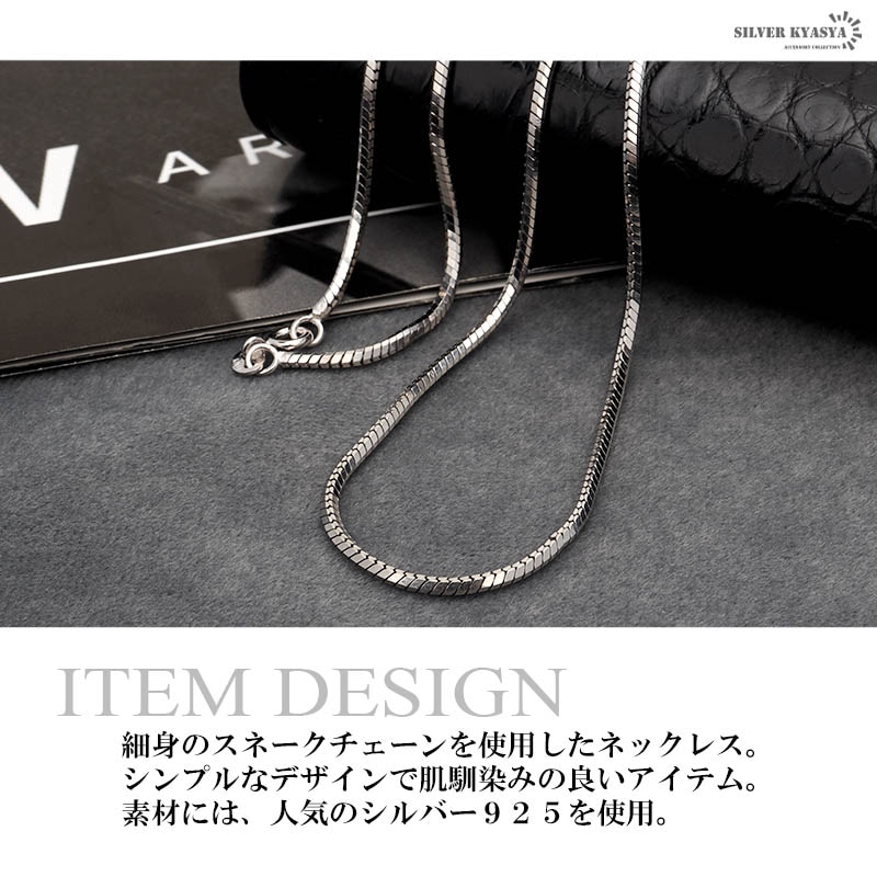 ■スネークチェーンネックレス 立体感のある細身スネークチェーンネックレス。チェーンにカッティングを施したことで、光を反射して贅沢に輝きます。しっかりと厚みがあり存在感を放つアイテム。 ■イタリア製の留め具 圧倒的に壊れにくい!イタリア製の引き輪タイプの留め具を採用!見た目もシンプルな仕上がり! ■SILVER KYASYAオリジナルアイテム 人気のシルバー925を取り入れたオリジナルチェーンシリーズ。 ・素材感と使用感にこだわったクオリティ満点のアイテムです! ・工房にて長年経験を積んだ職人さんが責任を持って製造! ・発送前にもスタッフが丁寧且つしっかり検品! ぜひ一度お試しください! | |