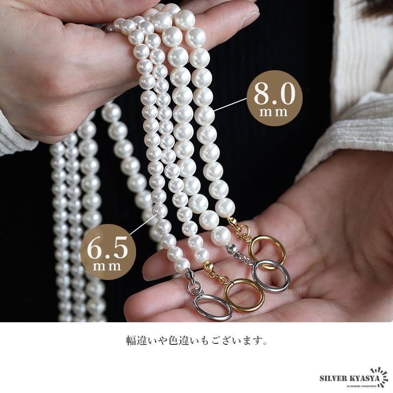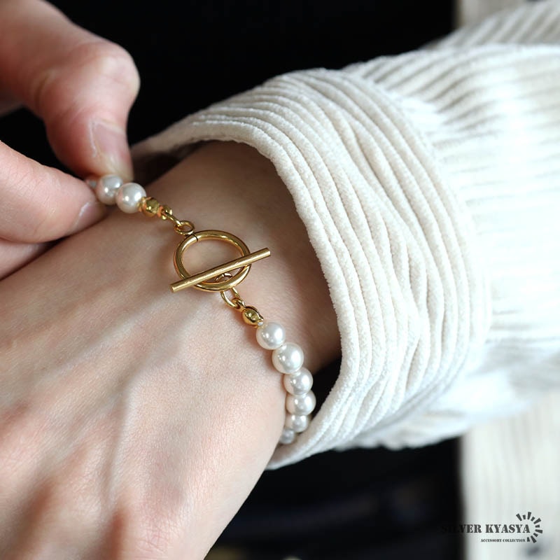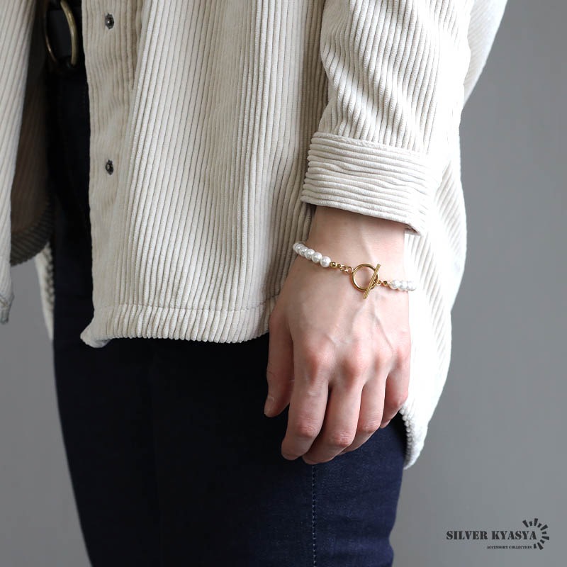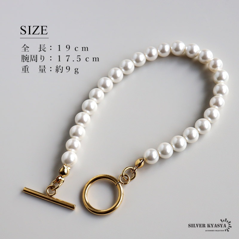 | | パール幅:約6.5mm 全長:19cm 腕周り:17.5cm 重量:約9g 参考:レディースモデル腕周り:14.5cm |