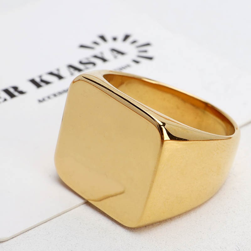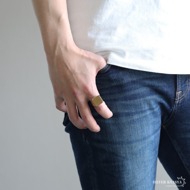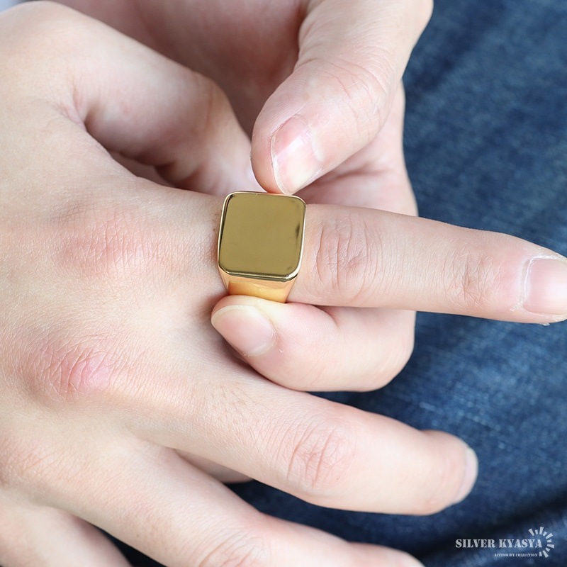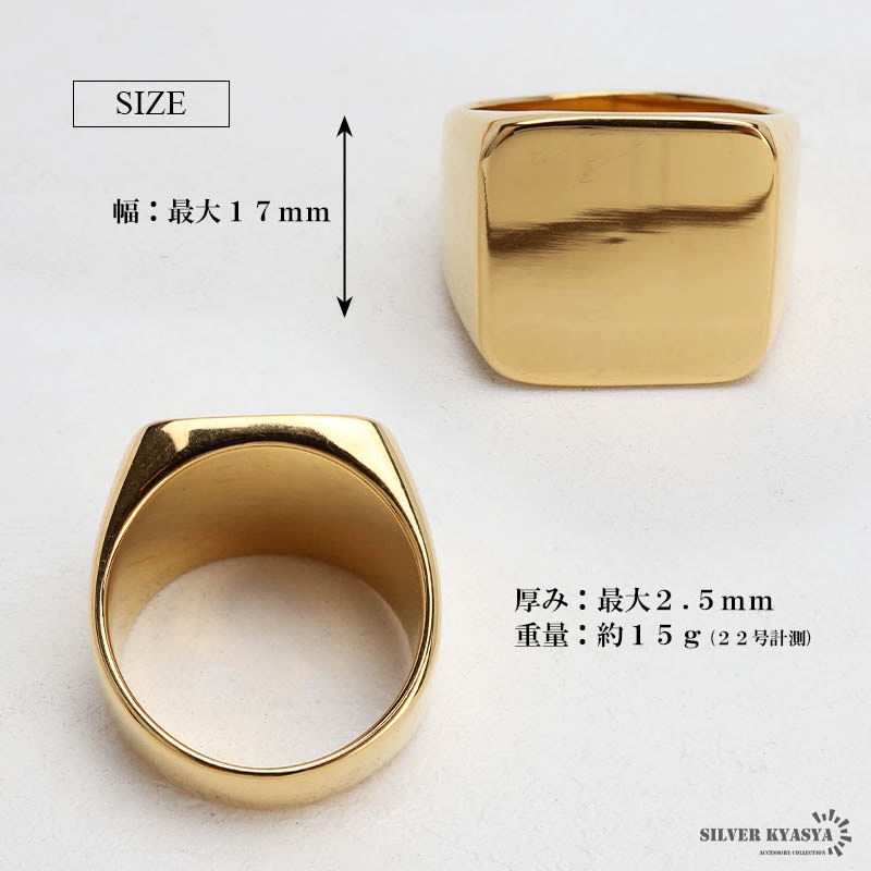 ■特大シンプル印台 サイズ感があるスクエア型のプレーンな印台リング。装飾がないため汎用性が高いアイテム。18KGP加工、耐久性の高いステンレス素材。 ■ステンレス素材を使用 金属部分は頑丈なことで知られるステンレス素材を採用。耐久性はもちろん耐水性も高く水場での着用も可能。金属アレルギーも出にくいとされている金属です。 | |