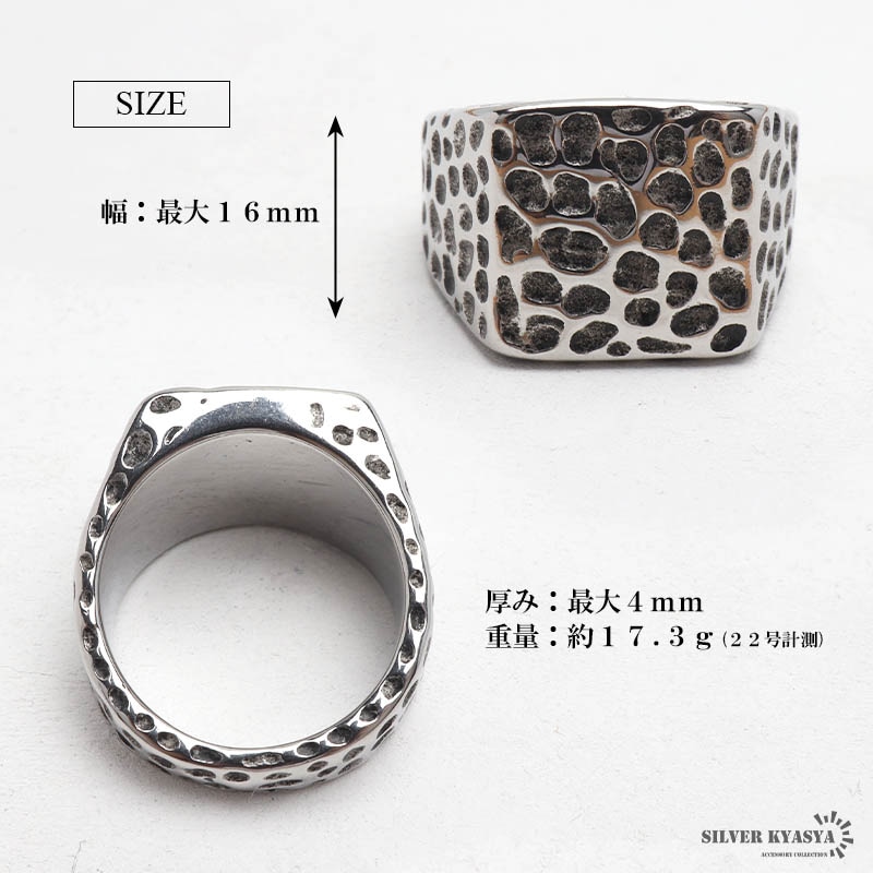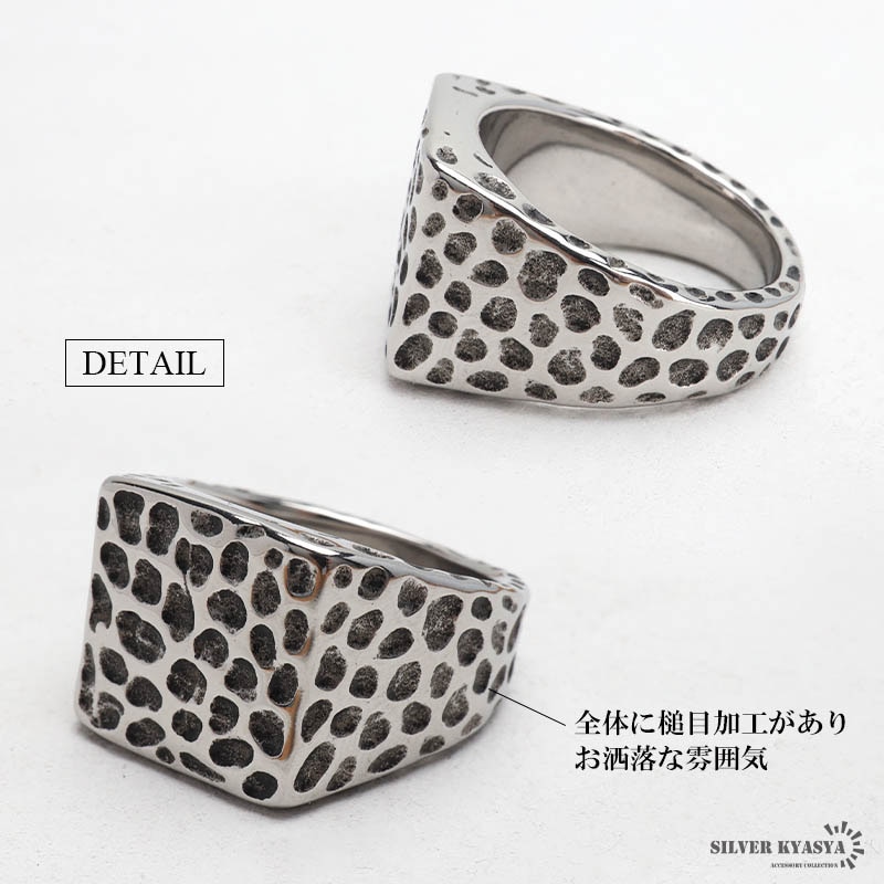 ■レオパード柄槌目 全体に槌目風加工が施された個性的なデザイン。レオパード柄にも見え、ワンポイントに最適。耐久性の高いステンレス素材。 ■ステンレス素材を使用 金属部分は頑丈なことで知られるステンレス素材を採用。耐久性はもちろん耐水性も高く水場での着用も可能。金属アレルギーも出にくいとされている金属です。 | |