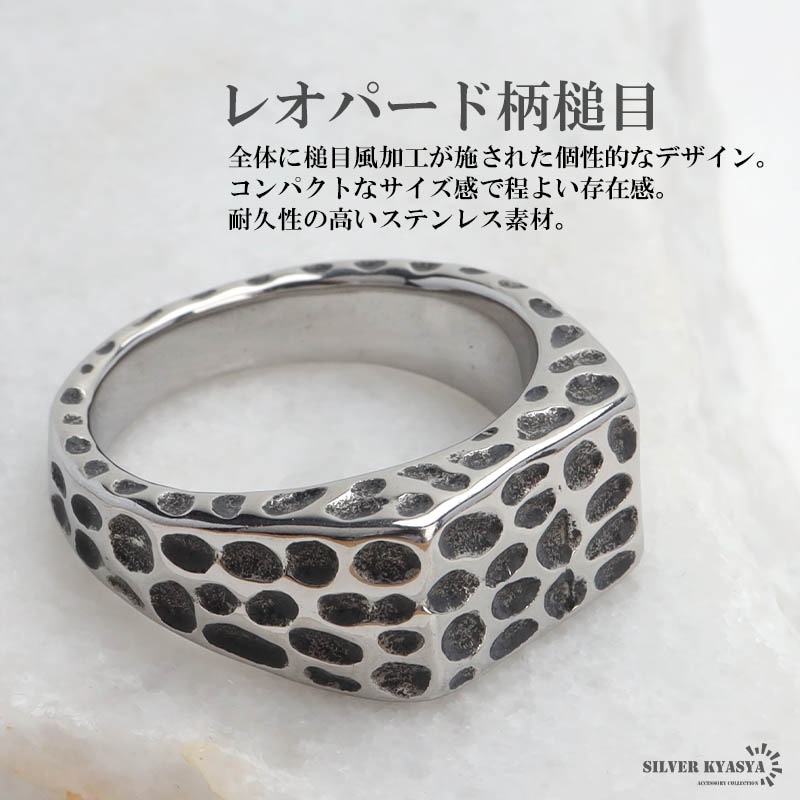 ■レオパード柄槌目 全体に槌目風加工が施された個性的なデザイン。コンパクトなサイズ感で程よい存在感。耐久性の高いステンレス素材。 ■ステンレス素材を使用 金属部分は頑丈なことで知られるステンレス素材を採用。耐久性はもちろん耐水性も高く水場での着用も可能。金属アレルギーも出にくいとされている金属です。 | |