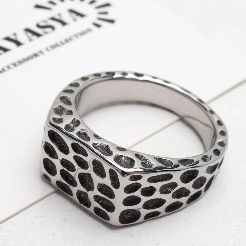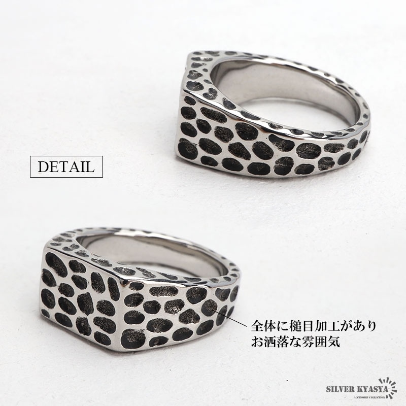 ステンレス スクエアストーン つや消し印台リング 3タイプ [r944]