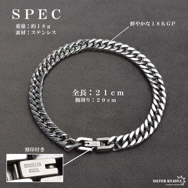| | 幅:約6mm 厚み:約3mm 全長:21cm 腕周り:20cm 重量:約18g 参考:メンズモデル腕周り約16cm |