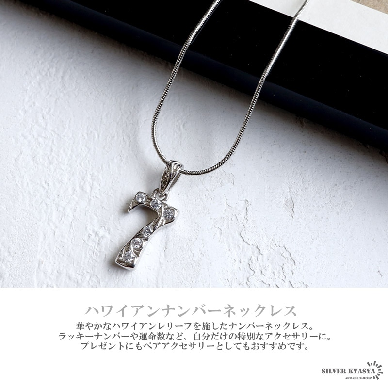 ■ITEM DETAIL 華やかなハワイアンレリーフを施し、ジルコニアを据えたナンバーネックレス。ラッキーナンバーや運命数など、お好きな数字を選べば、自分だけの特別なアクセサリーになること間違い無し!大切な人への贈り物にもぴったりのアイテムです。 ■滑らかなスネークチェーン つるんとした質感でしなやかさのあるスネークチェーンをセット。細身ながらもボリューム感のあるデザインが映えます。 ■SILVER925素材 シルバー925は、銀含有率(純度)92.5%を示し、一般的に純銀として扱われています。サビや劣化等がほとんどなく金属アレルギーも出にくいとされており、アクセサリーとして重宝される金属です。 | |