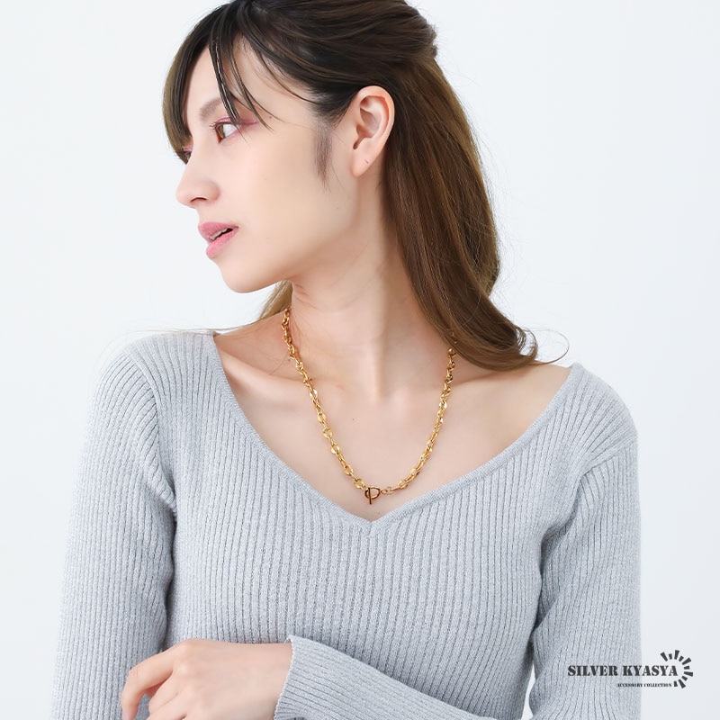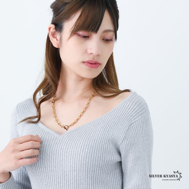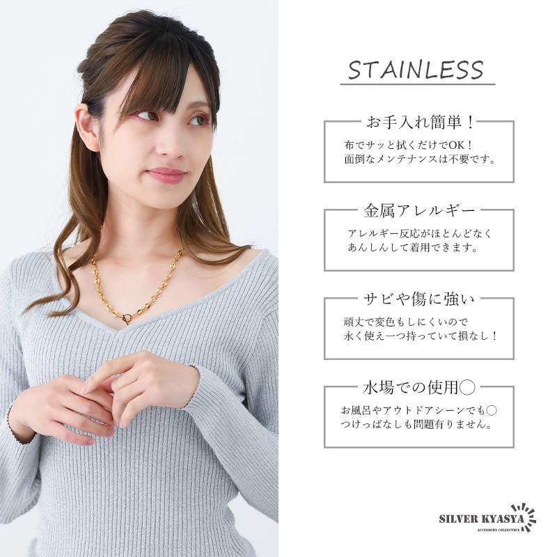 ■ITEM DESIGN 潰したコマがユニークに輝くあずきチェーンのアイテム。留め具は人気のマンテルタイプです。ブレスレットとネックレスのセットで統一感あるスタイルを楽しめます。 ■ステンレス素材を使用 金属部分は頑丈なことで知られるステンレス素材を採用。耐久性はもちろん耐水性も高く水場での着用も可能。金属アレルギーも出にくいとされている金属です。 | |