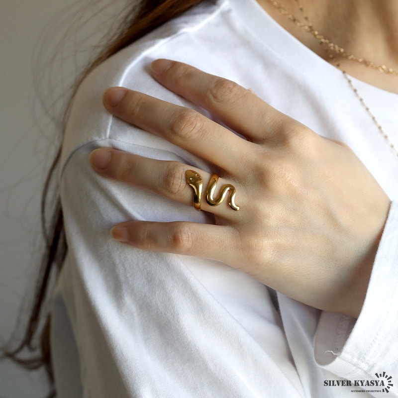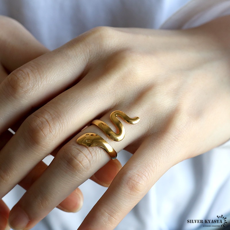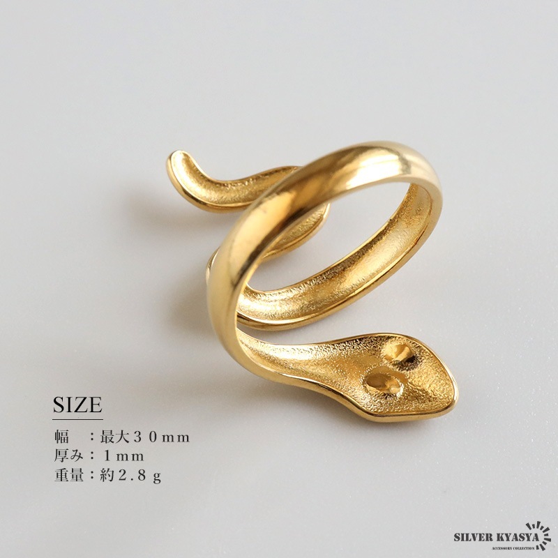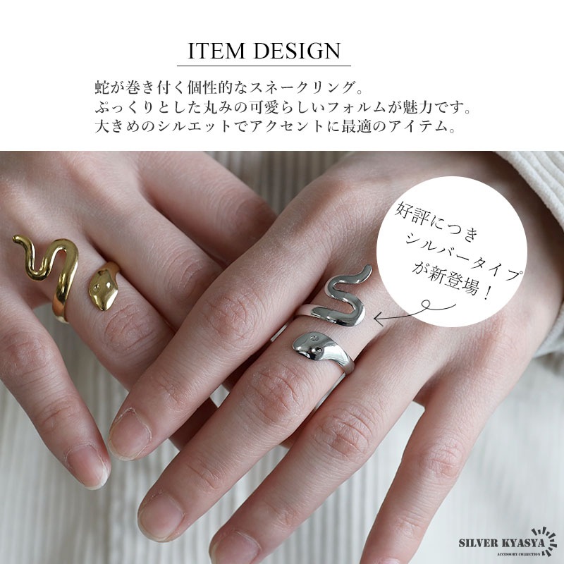 ■ITEM DETAIL 蛇が巻き付く個性的なスネークリング。ぷっくりとした丸みの可愛らしいフォルムが魅力です。大きめのシルエットでアクセントに最適のアイテム。 ■ステンレス素材 金属部分は頑丈なことで知られるステンレス素材を採用。耐久性はもちろん耐水性も高く水場での着用も可能。金属アレルギーも出にくいとされている金属です。 | |