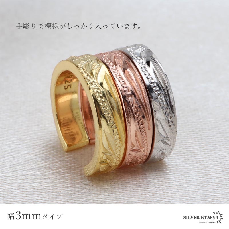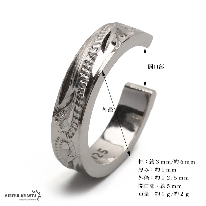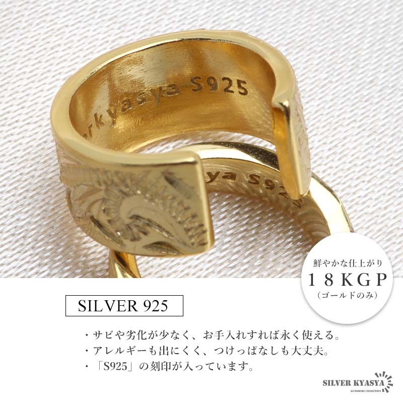 ■SILVER KYASYAオリジナル 手彫りによる繊細なカットが映えるハワイアンイヤーカフ。SILVER KYASYA独自のオリジナルデザインアイテムで、ここにしかないデザインを楽しめます。ゴールド・シルバー・ローズゴールドの3カラーバリエーション。 ■大人のシルバー925 大人の魅力あふれるシルバー925素材を採用。「925」とは銀の含有率(純度)92.5%を示し、一般的に純銀として扱われます。サビや劣化等がほとんどなく金属アレルギーも出にくいとされており、アクセサリーとしての実用性もある金属です。 | |