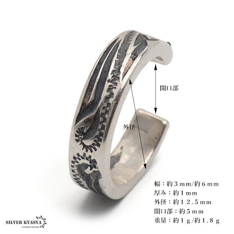 ■ITEM DESIGN 手彫りによる繊細なカットが映えるハワイアンイヤーカフ。燻し風加工を施しており、模様がはっきりとした仕上がりに。SILVER KYASYA独自のオリジナルデザインアイテムで、ここにしかないデザインを楽しめます。 ■大人のシルバー925 大人の魅力あふれるシルバー925素材を採用。「925」とは銀の含有率(純度)92.5%を示し、一般的に純銀として扱われます。サビや劣化等がほとんどなく金属アレルギーも出にくいとされており、アクセサリーとしての実用性もある金属です。 | |