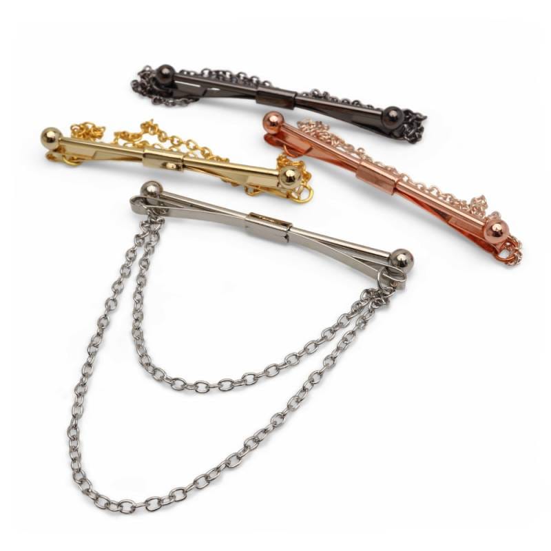 2連チェーンをセットしたメタリックカラーピン。4色 [zp016]