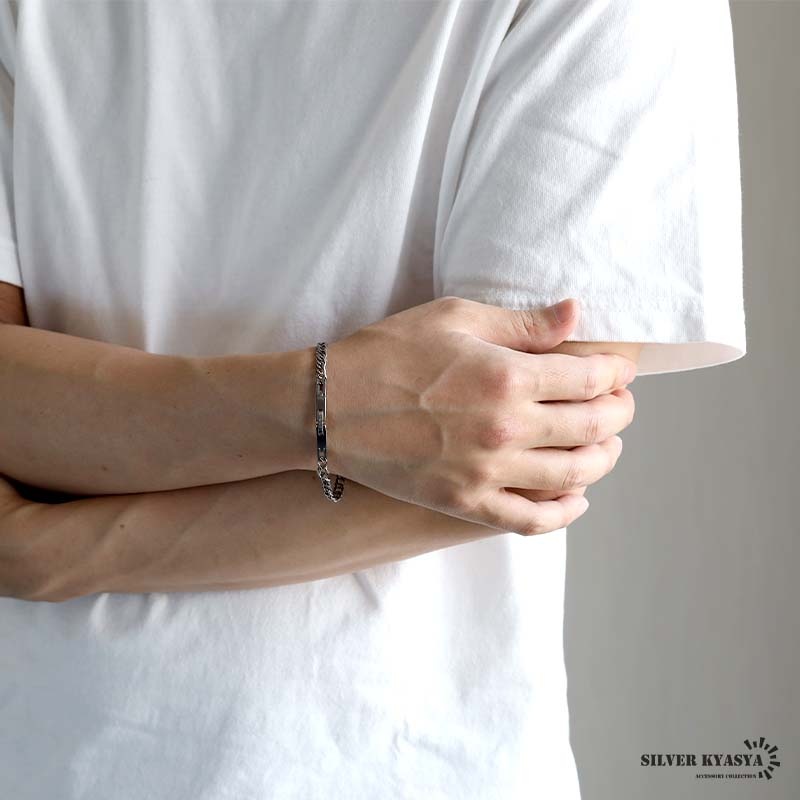 ステンレス クロスの浮き彫りが施された喜平チェーンブレスレット。2サイズ [b1020]