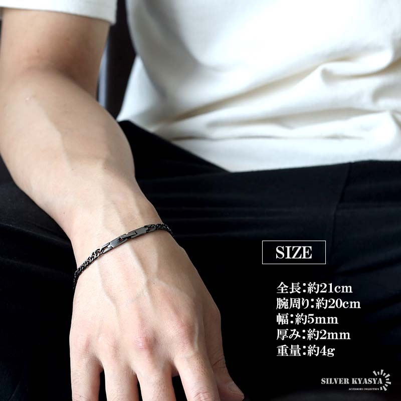 | | 全長:約21cm 腕周り:約20cm 幅:約5mm 厚み:約2mm 重量:約4g |