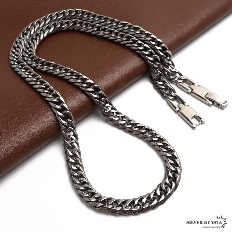 ■ダブル喜平×チタン 高密度で存在感あふれるダブル喜平のネックレスにチタンタイプが登場。程よいサイズ感で普段のファッションに馴染みやすいアイテムです。留め具は見た目がお洒落で人気の中折れ式を採用。 ■チタンアクセサリー 耐食性が高く汗や水分に強い、レジャーシーンなどで大活躍するチタン素材を使用。丈夫で長持ちする素材なので永く使えるアイテムです。さらにその軽さは付けているのを忘れるほどの快適な装着感を実現。つけっぱなしにもおすすめです。 | |