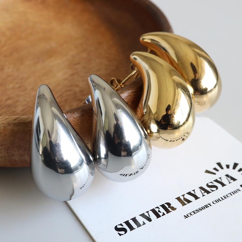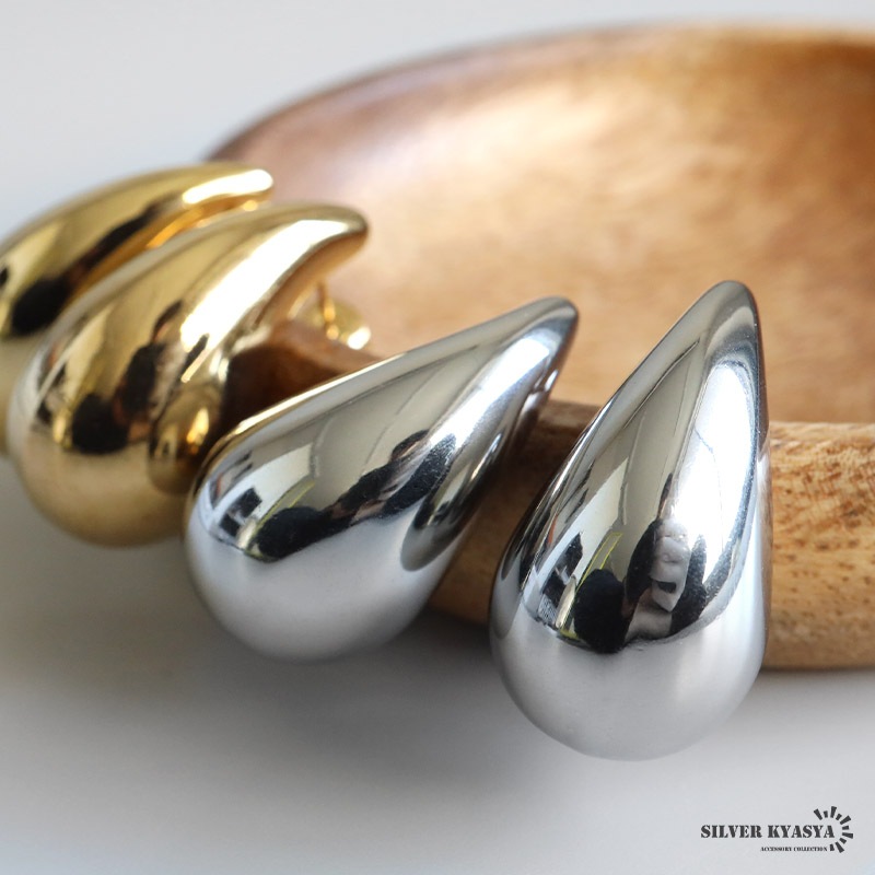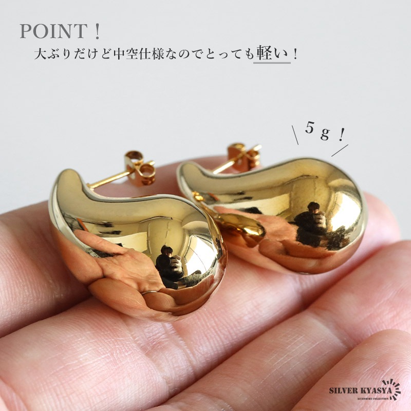 ■ITEM DESIGN しずくをモチーフにした大ぶりピアス。つやつやの質感が耳元をしっかり飾ってくれます。大きいのに中空仕様でとっても軽いので耳に優しいアイテム◎幅広いファッショに合うのでアクセント使いにぴったりです。 ■安心のステンレスアイテム 頑丈でお手入れも簡単なステンレス製アクセサリー。錆びることもなくサッと拭くだけメンテもかんたん。金属アレルギーが出にくいのもポイントです。 | |
