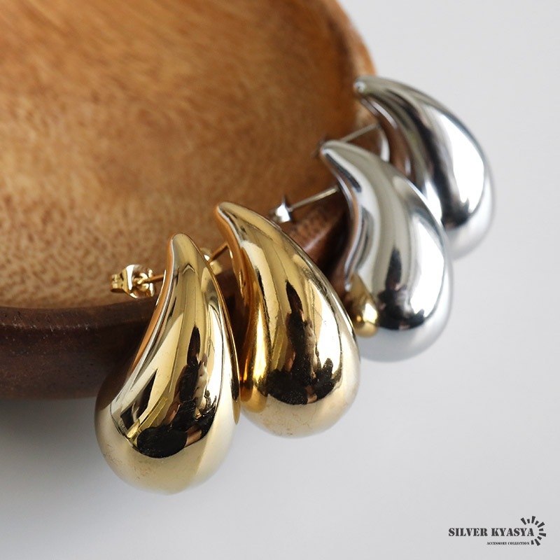 ステンレス 「滴る水」をモチーフにしたティアドロップピアス。 [e503]