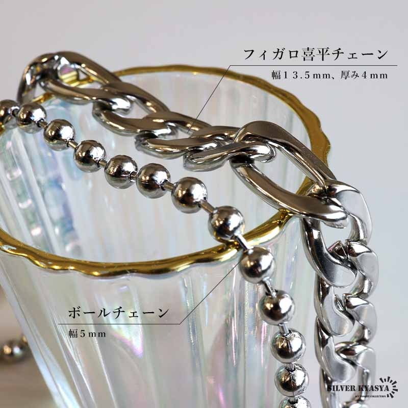 | | フィガロ喜平チェーン 幅13.5mm、厚み4mm、長さ40cm ボールチェーン 幅5mm、長さ45cm |