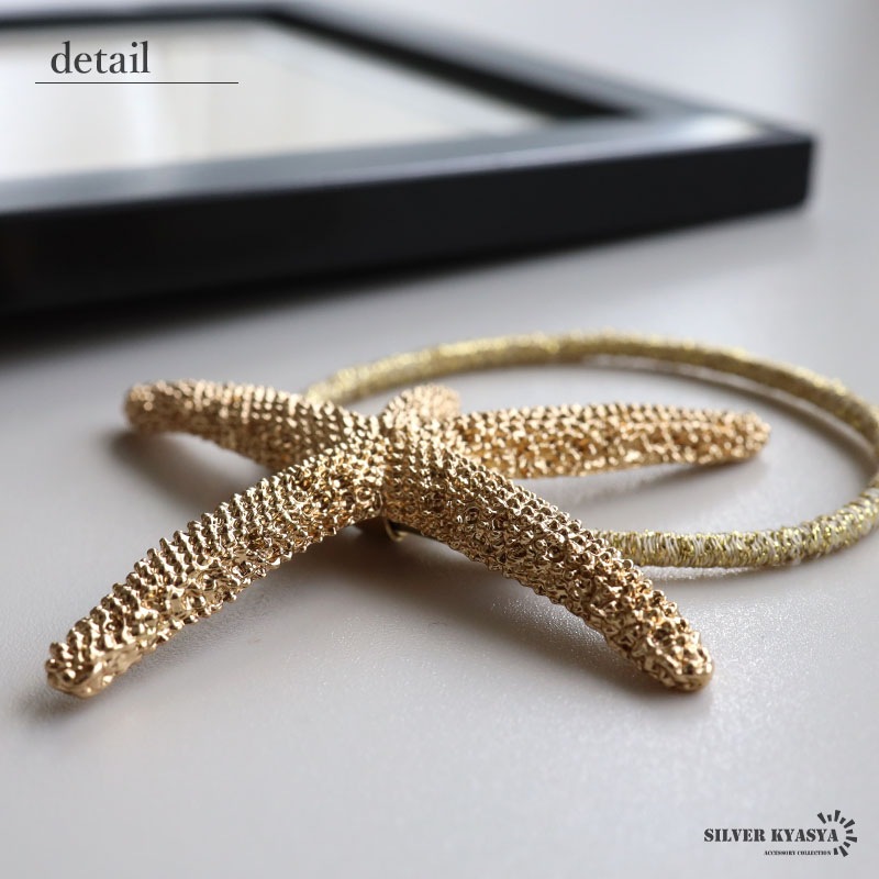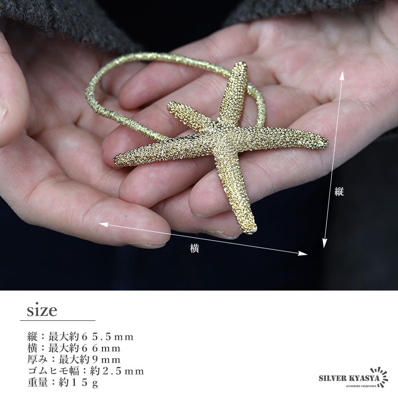■ITEM DESIGN とてもリアルな「ヒトデ」モチーフをセットしたヘアゴム。繊細に表現された表面の凸凹が細かな輝きを放ってくれます。髪に結ぶだけでいつもと違ったアクセントに。 | |