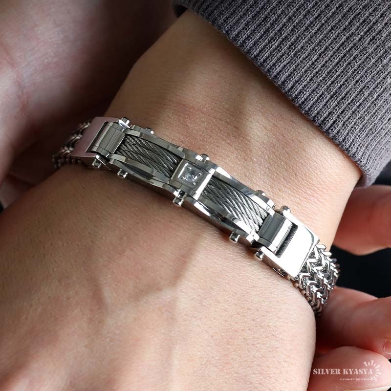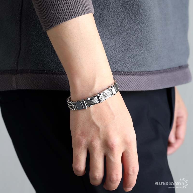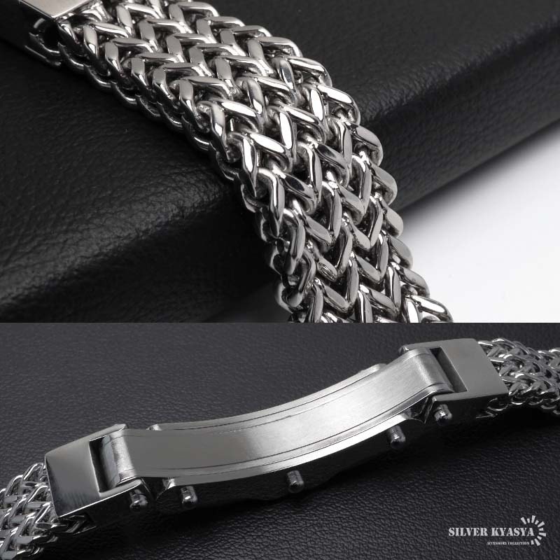 ステンレス クロスの浮き彫りが施された喜平チェーンブレスレット。2サイズ [b1020]