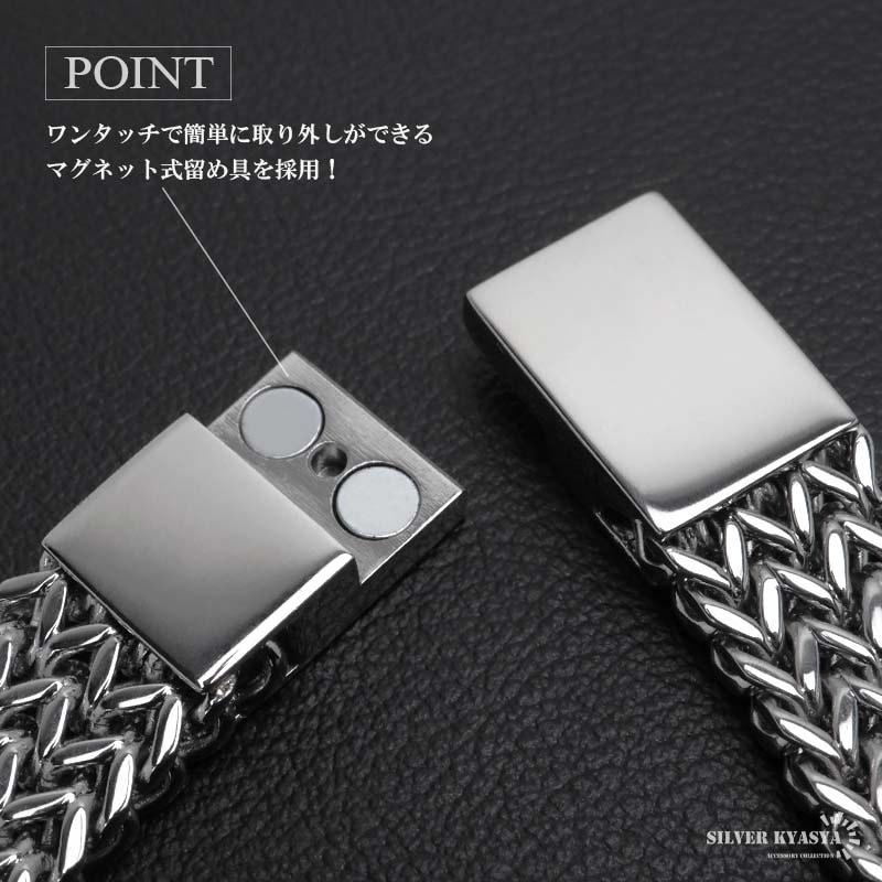 ■ITEM DESIGN 機械的なデザインが目を惹く、ごつめのチェーンブレスレット。チェーンには密度が高く重厚感たっぷりなデザインチェーンを採用。単品使いでもしっかり手首に存在感を与えてくれるアイテムです。 ■安心のステンレスアイテム 頑丈でお手入れも簡単なステンレス製アクセサリー。錆びることもなくサッと拭くだけメンテもかんたん。金属アレルギーが出にくいのもポイントです。 | |