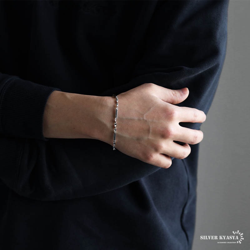 シルバー925 丁寧な4面カットを施した定番のあずきチェーンブレスレット。 [bs223-black]