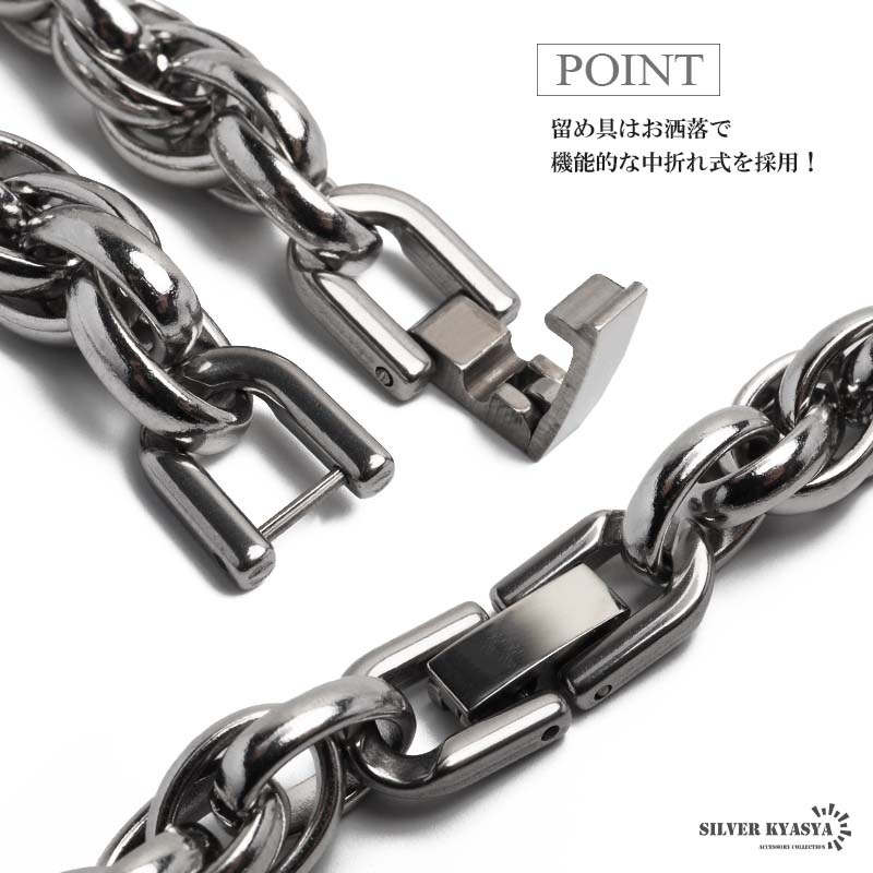 ステンレス クロスの浮き彫りが施された喜平チェーンブレスレット。2サイズ [b1020]