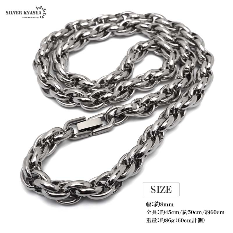 | | 幅:約8mm 全長:約45cm/約50cm/約60cm 重量:約86g(60cm計測) |