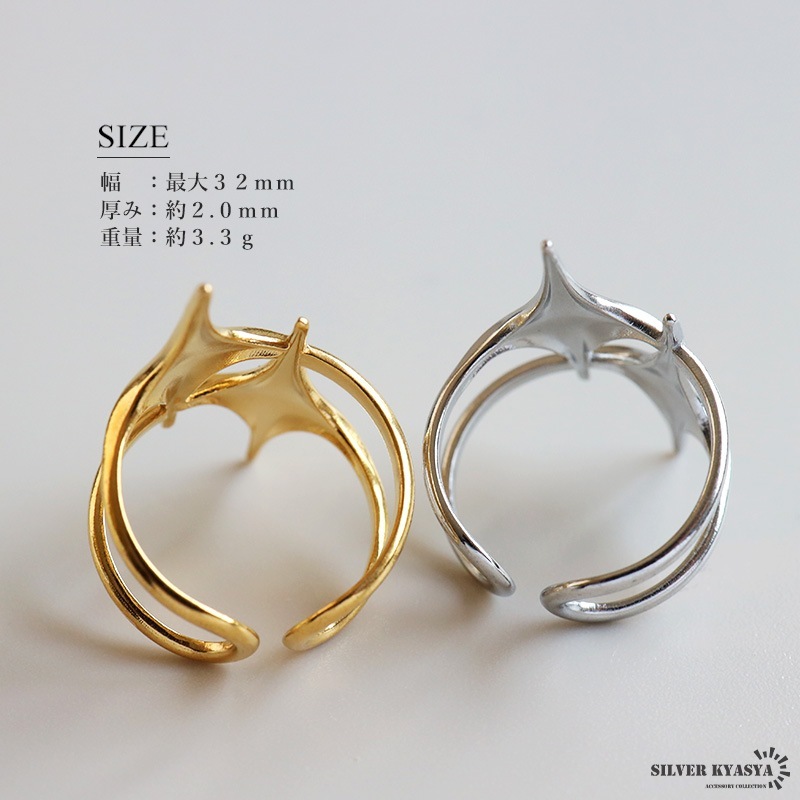 | | 幅:最大32mm 厚み:約2mm 号数:17~19号(微調整可能) 重量:約3.3g |