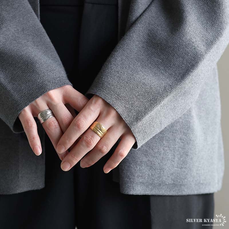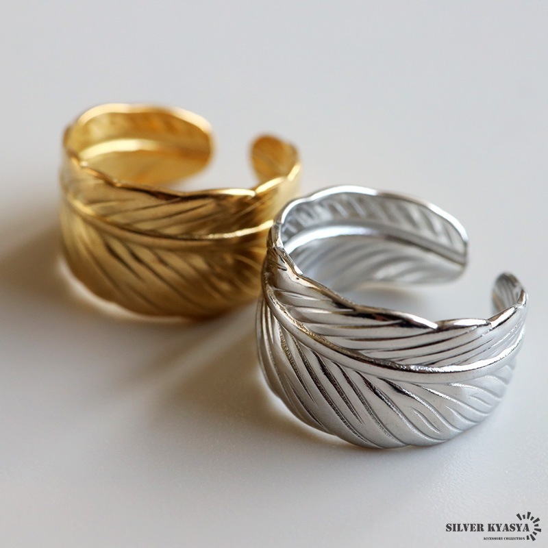 ■ITEM DETAIL 羽根をモチーフにしたフェザーリング。滑らかなフォルムに毛並みの模様が映えるこだわりのデザイン。ワイドシルエットでアクセントに最適のアイテム。 ■ステンレス素材 金属部分は頑丈なことで知られるステンレス素材を採用。耐久性はもちろん耐水性も高く水場での着用も可能。金属アレルギーも出にくいとされている金属です。 | |