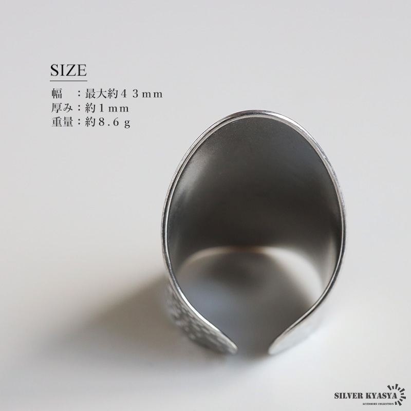 | | 幅:最大約43mm 厚み:約1mm 号数:15号(微調節可能) 重量:約8.6g |