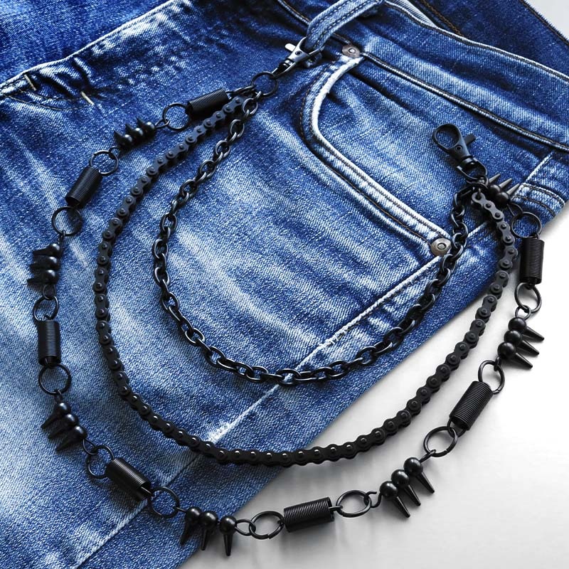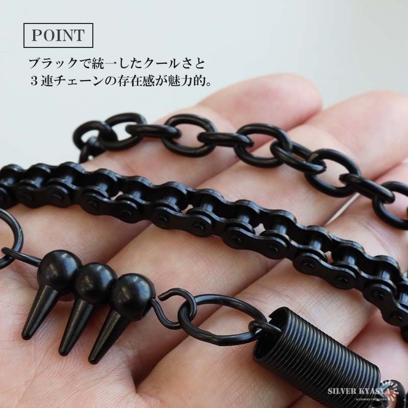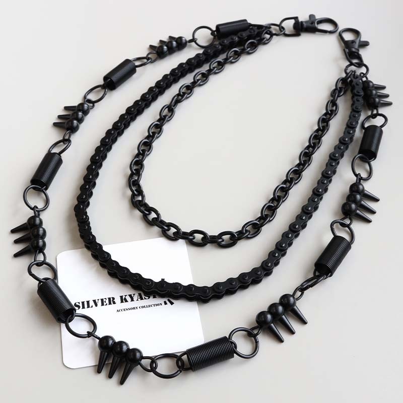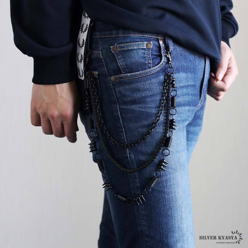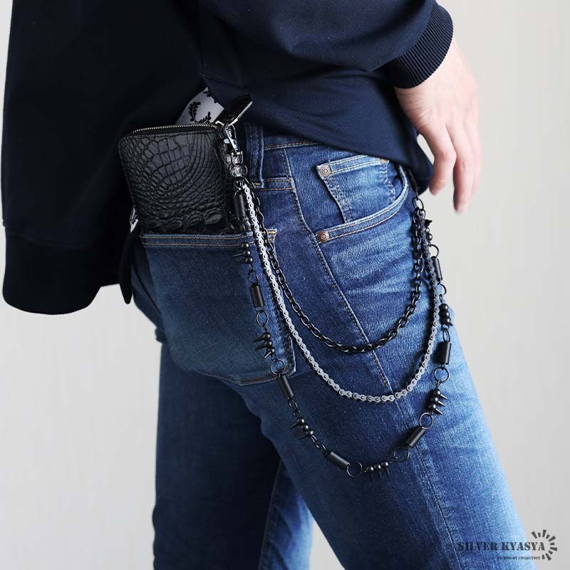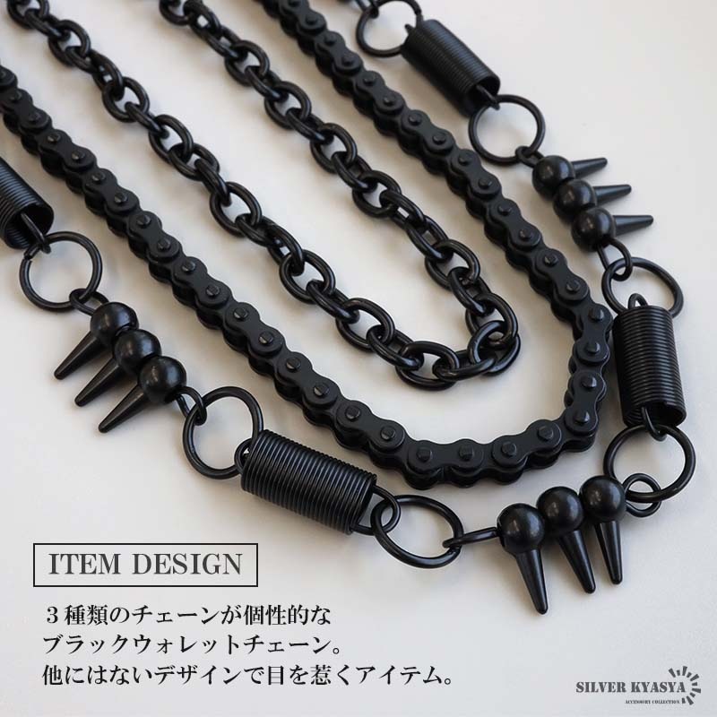 ■ITEM DESIGN 3種類のチェーンが個性的なブラックウォレットチェーン。他にはないデザインで目を惹くアイテム。 | |
