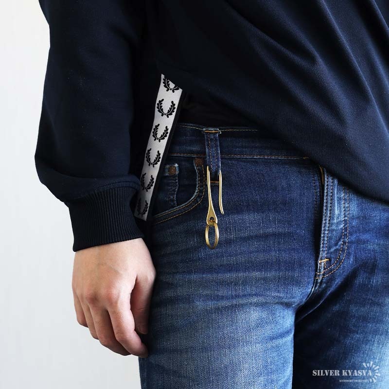■ITEM DESIGN 釣り針モチーフの大きめベルトフック。滑らかな湾曲美がとても魅力です。シンプルなデザインでどんなファッションにも馴染みます。 | |